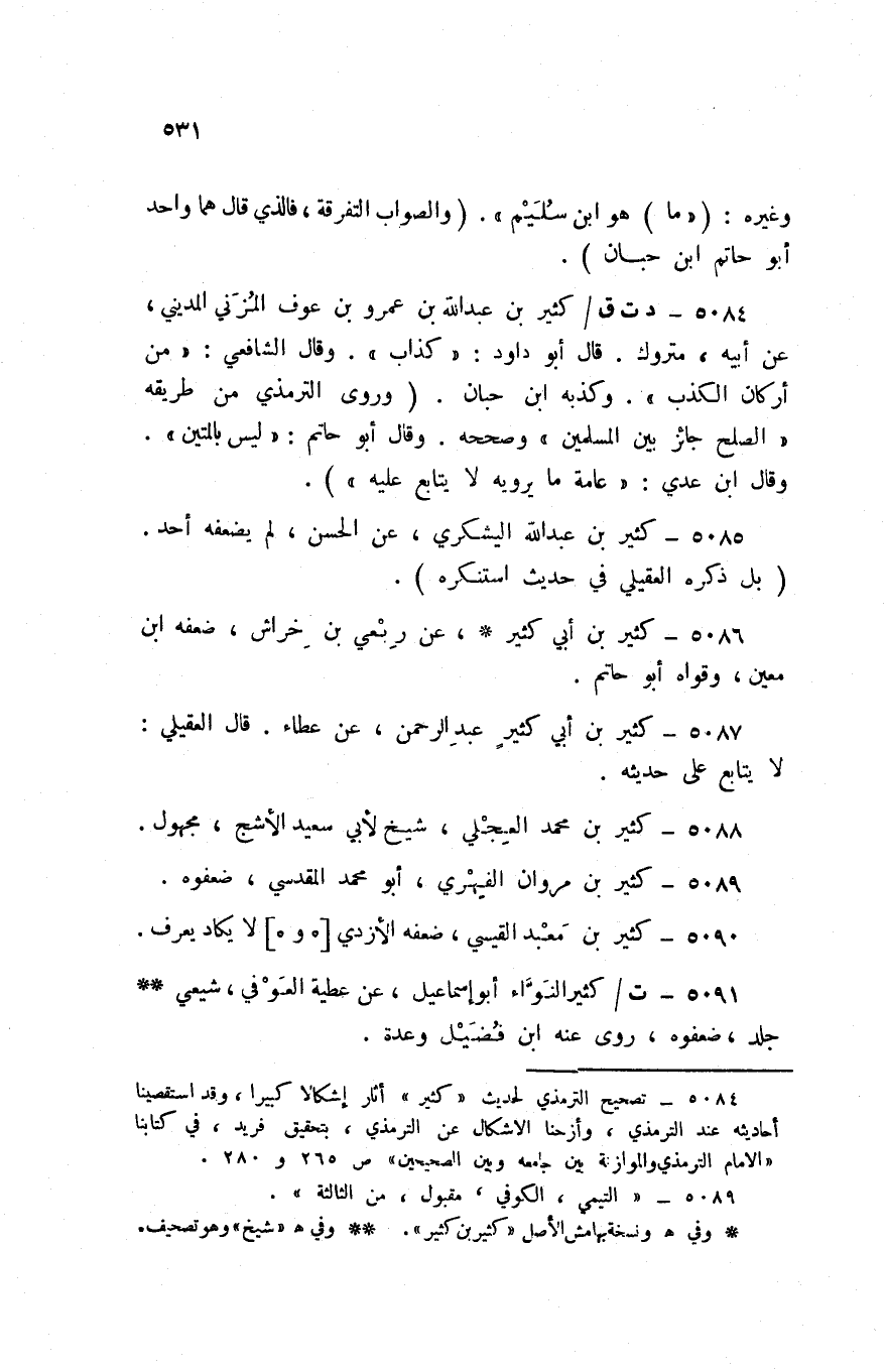 5091 - ت / كثير النواء أَبُو إِسْمَاعِيل عَن عَطِيَّة الْعَوْفِيّ شيعي جلد ضَعَّفُوهُ روى عَنهُ ابْن فُضَيْل وعدة