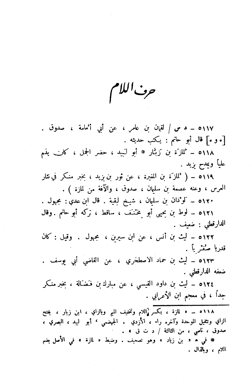 5118 - لمازة بن زبار أَبُو لبيد حضر الْجمل كَانَ يذم عليا ويمدح يزِيد