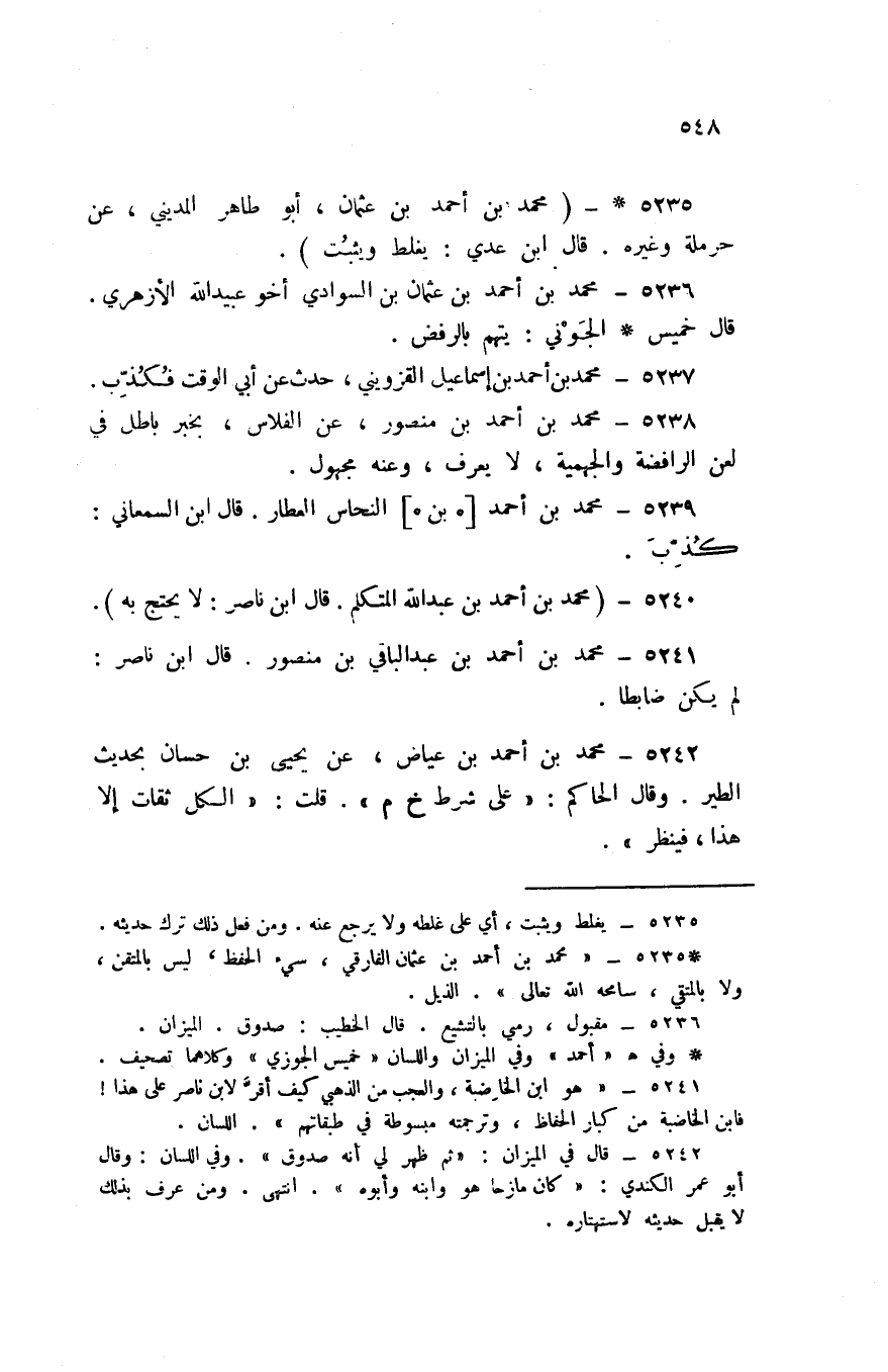 5240 - مُحَمَّد بن أَحْمد بن عبد الله الْمُتَكَلّم قَالَ ابْن نَاصِر لَا يحْتَج بِهِ