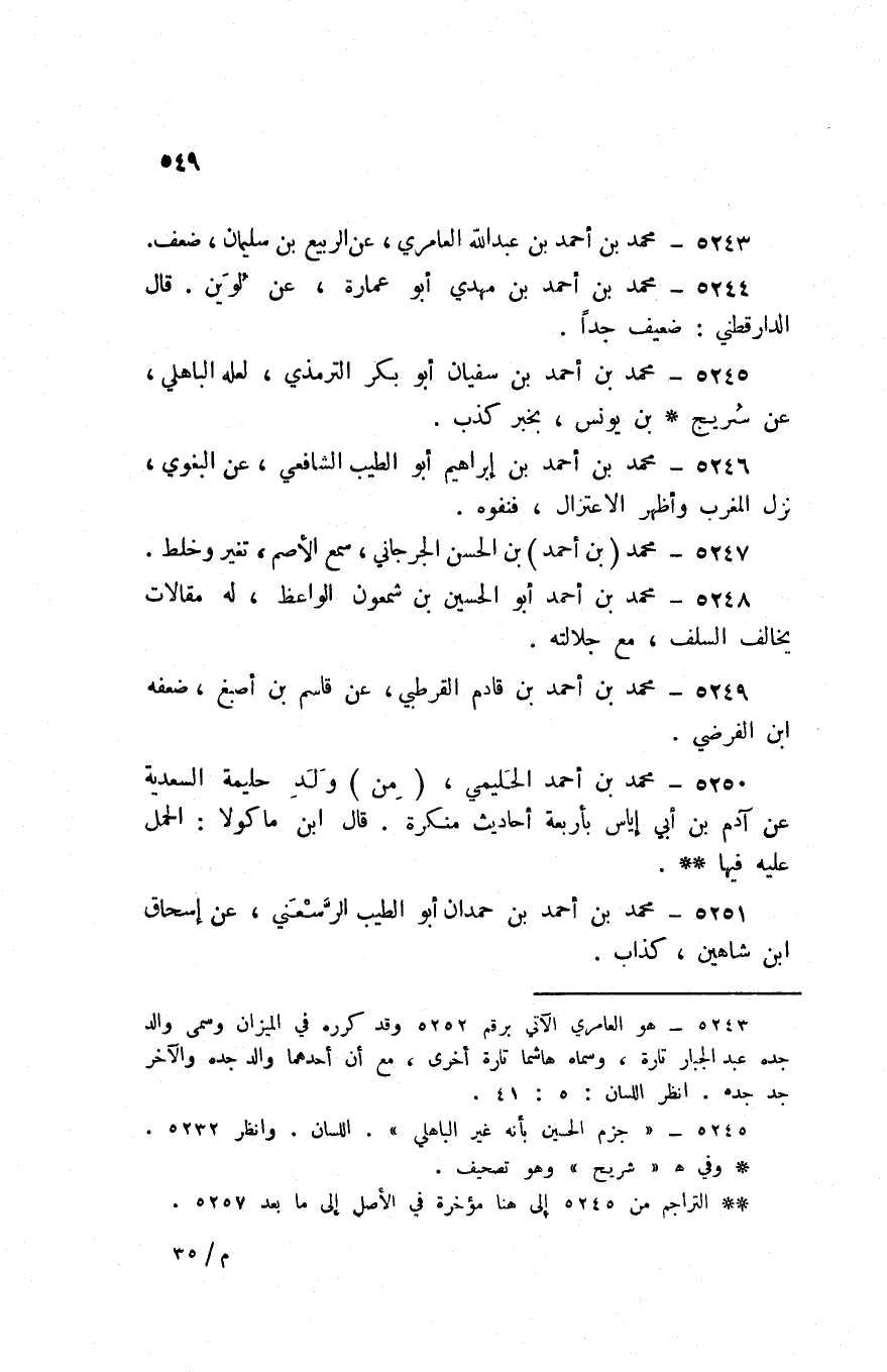 5249 - مُحَمَّد بن أَحْمد بن قادم الْقُرْطُبِيّ عَن قَاسم بن أصبغ ضعفه ابْن الفرضي