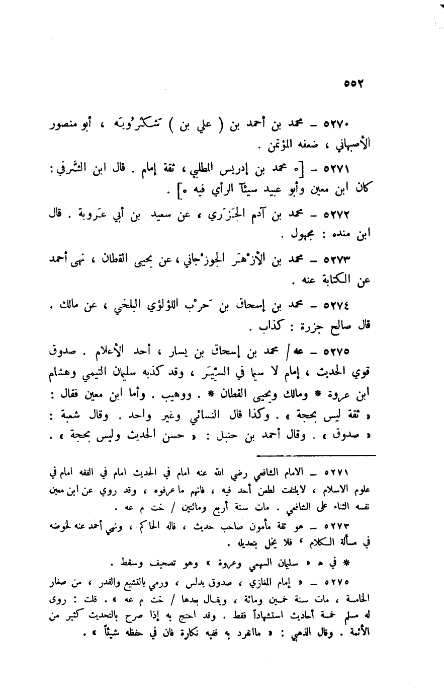 5271 - مُحَمَّد بن إِدْرِيس المطلبي ثِقَة إِمَام قَالَ ابْن الشَّرْقِي كَانَ ابْن معِين وَأَبُو عبيد سَيِّئًا الرَّأْي فِيهِ