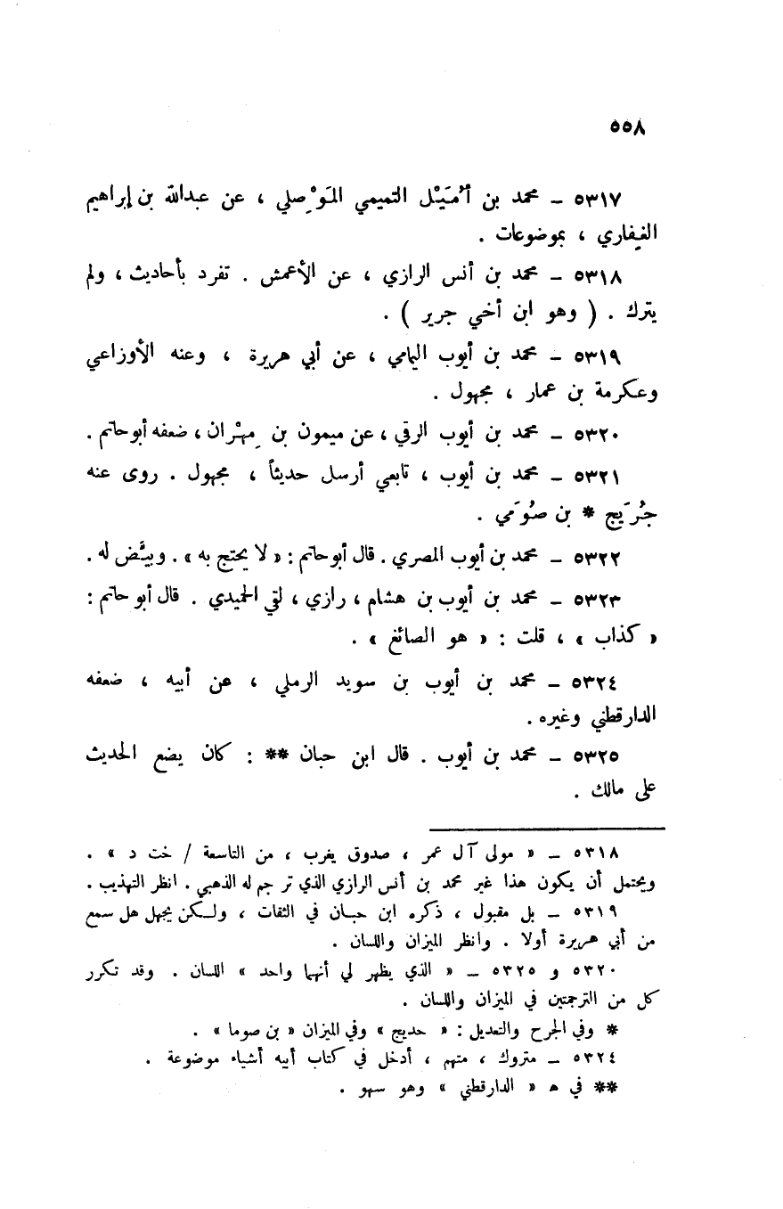 5323 - مُحَمَّد بن أَيُّوب بن هِشَام رازي لَقِي الْحميدِي قَالَ أَبُو حَاتِم كَذَّاب قلت هُوَ الصَّائِغ