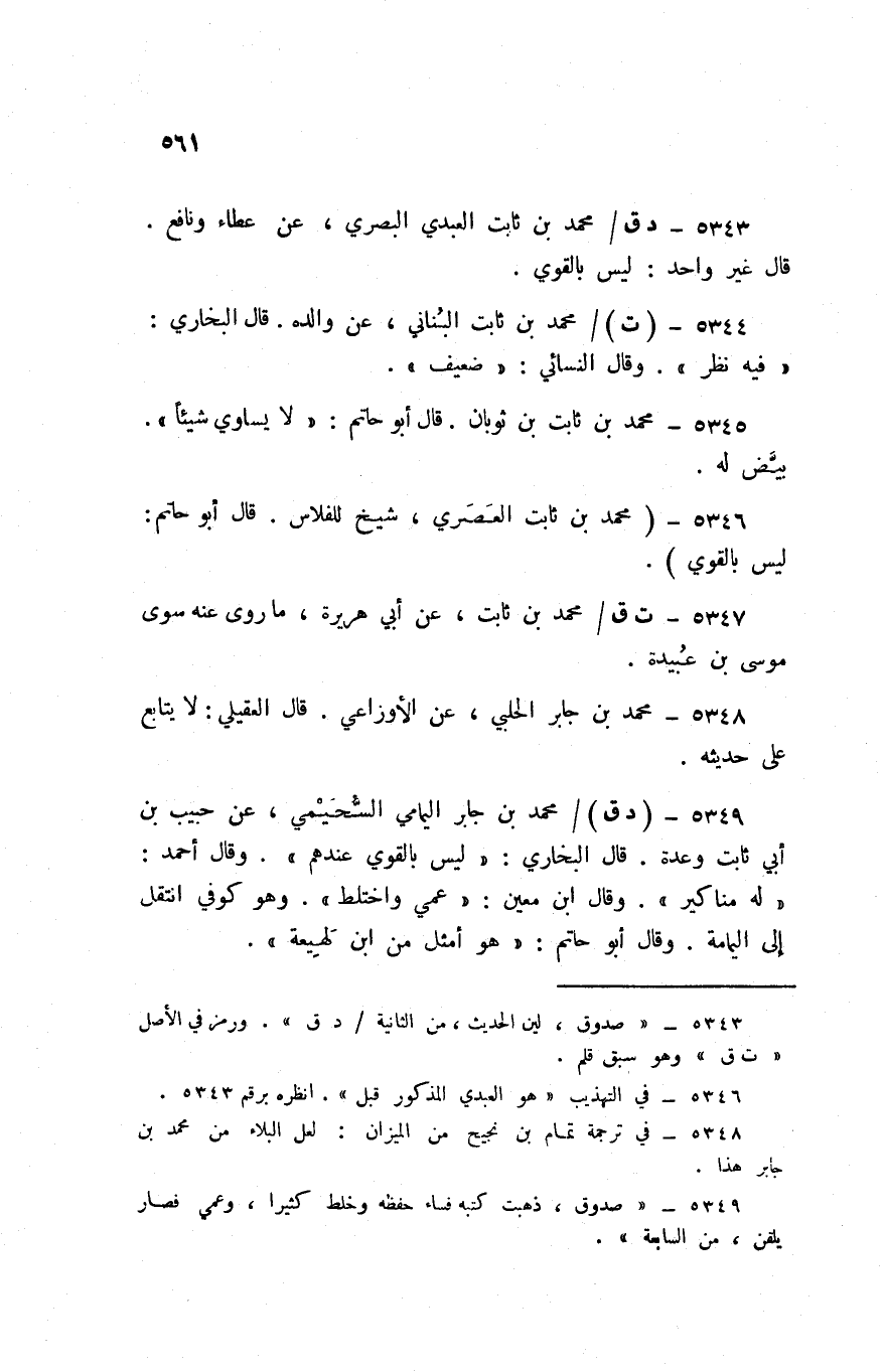 5346 - مُحَمَّد بن ثَابت العصري شيخ للفلاس قَالَ أَبُو حَاتِم لَيْسَ بِالْقَوِيّ
