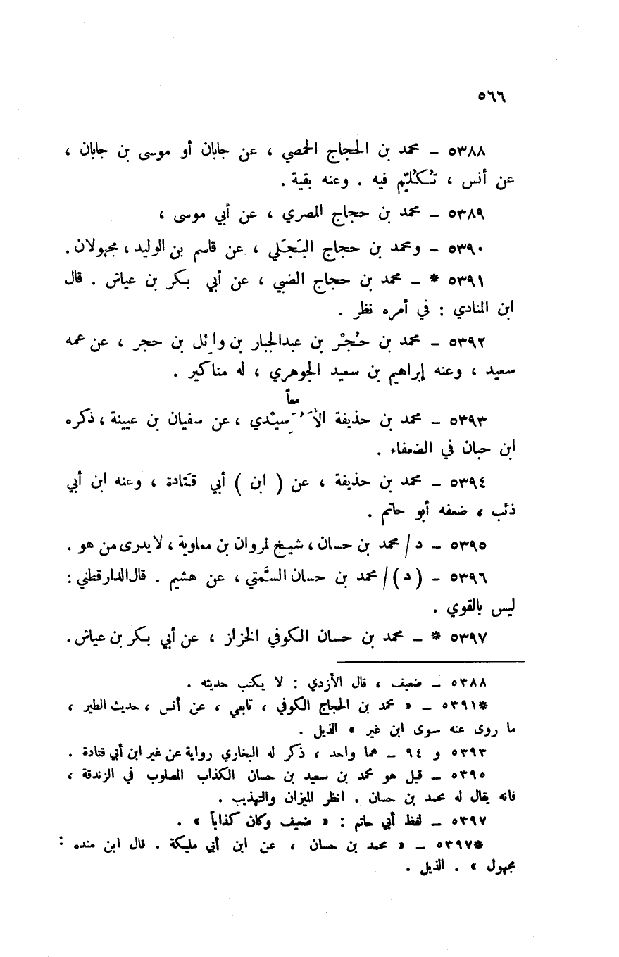 5391 - مُحَمَّد بن حجاج الضَّبِّيّ عَن أبي بكر بن عَيَّاش قَالَ ابْن الْمُنَادِي فِي أمره نظر
