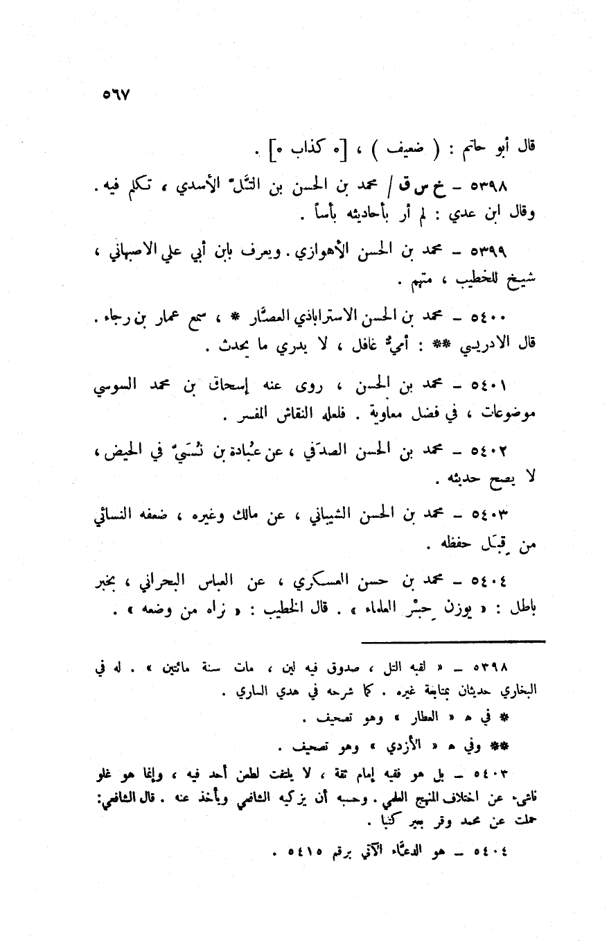 5399 - مُحَمَّد بن الْحسن الْأَهْوَازِي وَيعرف بِابْن أبي عَليّ الْأَصْبَهَانِيّ شيخ للخطيب مُتَّهم