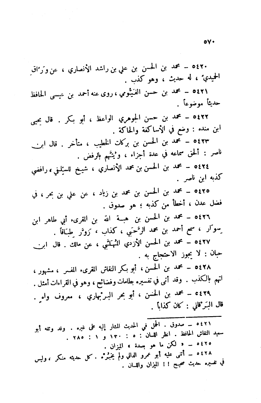 5424 - مُحَمَّد بن الْحسن بن مُحَمَّد بن الْأنْصَارِيّ شيخ للسلفي رَافِضِي كذبه ابْن نَاصِر