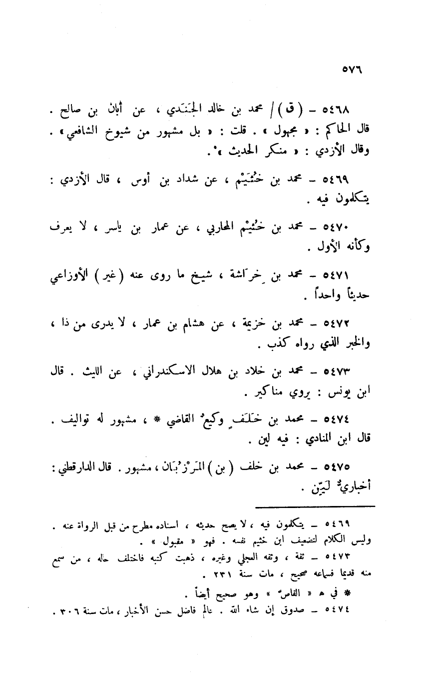 5475 - مُحَمَّد بن خلف بن الْمَرْزُبَان مَشْهُور قَالَ الدَّارَقُطْنِيّ أخباري لين
