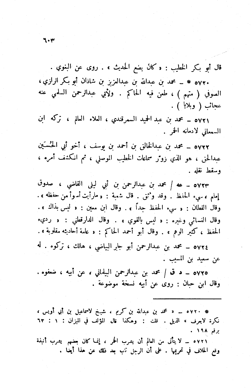 6721 - مُحَمَّد بن عبد الحميد السَّمرقَنْدِي الْعَلَاء الْعَالم تَركه ابْن السَّمْعَانِيّ لادمانه الْخمر