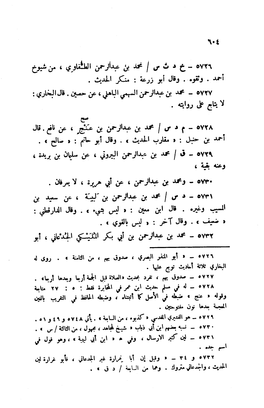 5726 - خَ د ت س / مُحَمَّد بن عبد الرحمن الطفَاوِي من شُيُوخ أَحْمد وثقوه وَقَالَ أَبُو زرْعَة مُنكر الحَدِيث