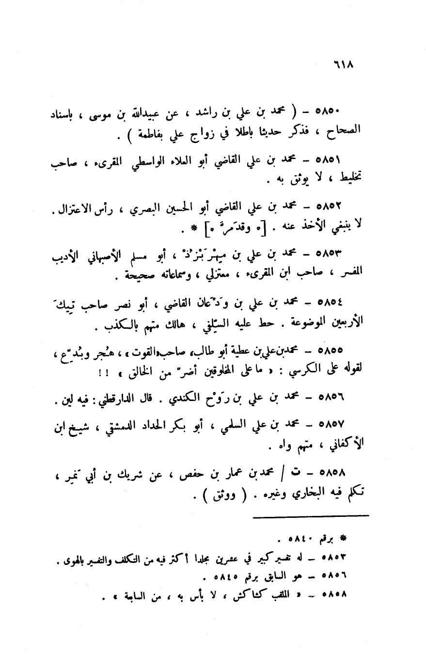 5852 - مُحَمَّد بن عَليّ القَاضِي أَبُو الْحُسَيْن الْبَصْرِيّ رَأس الاعتزال لَا يَنْبَغِي الْأَخْذ عَنهُ وَقد مر