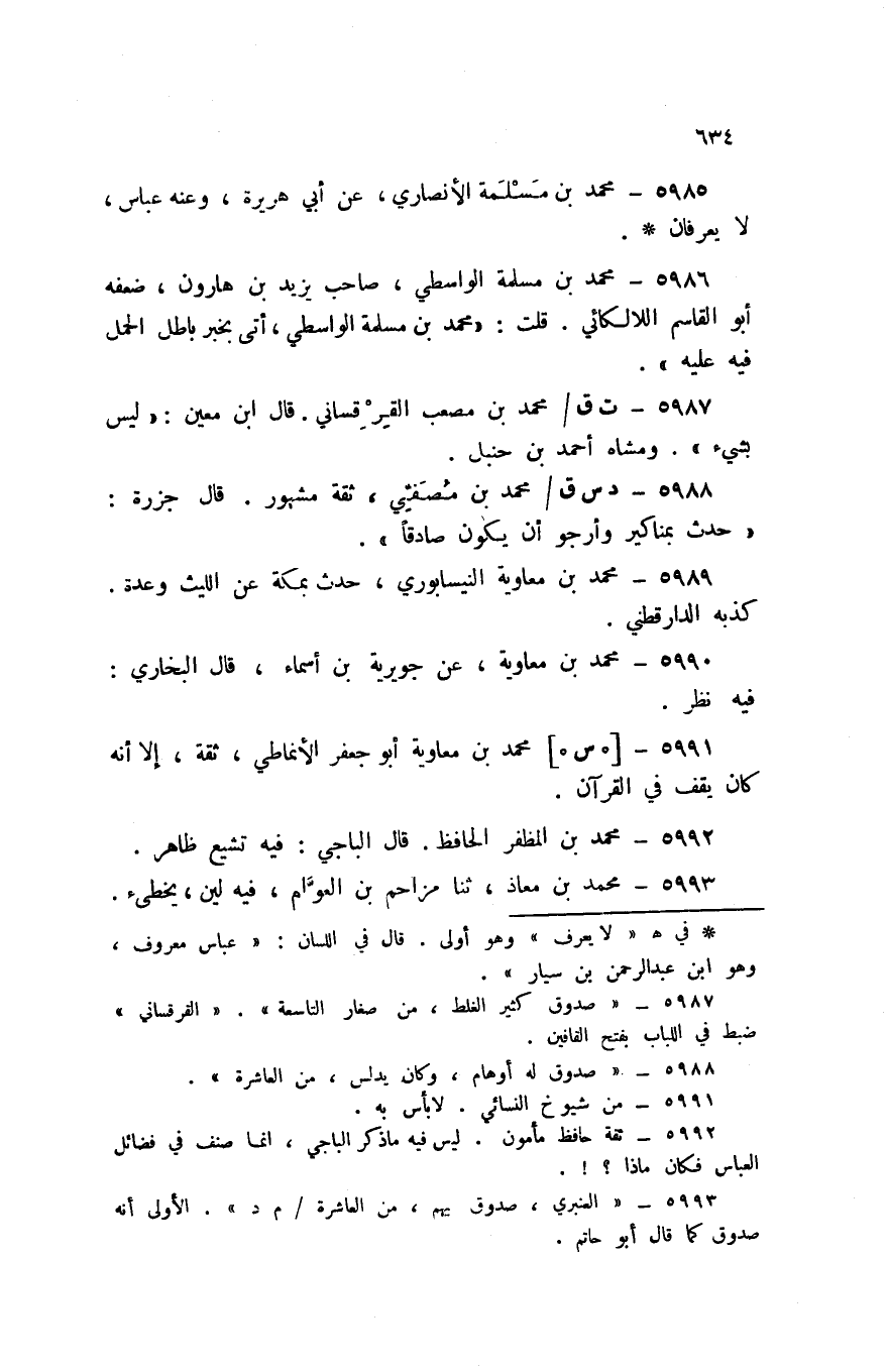5991 - س مُحَمَّد بن مُعَاوِيَة أَبُو جَعْفَر الْأنمَاطِي ثِقَة إِلَّا أَنه كَانَ يقف فِي الْقُرْآن