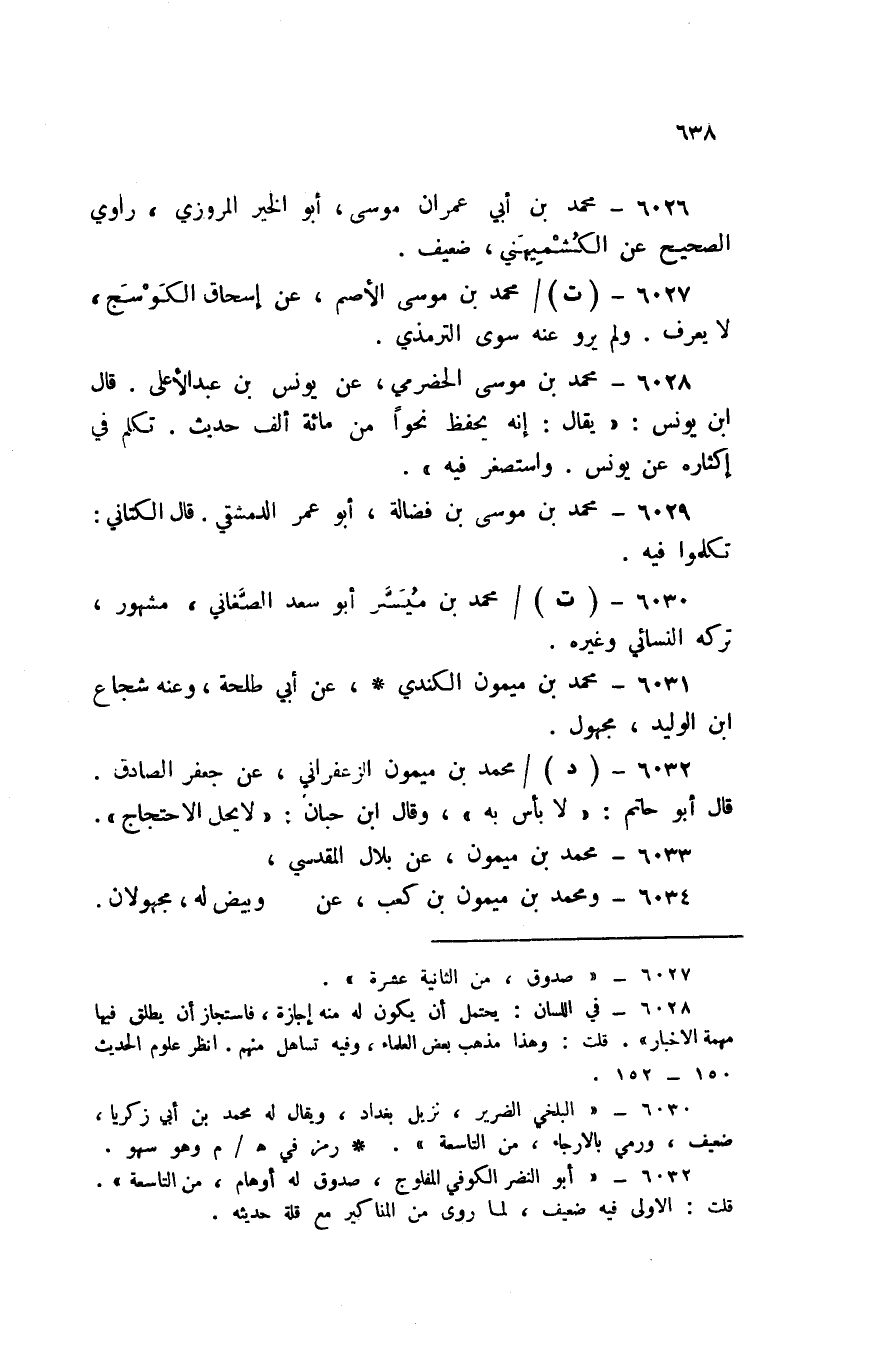 6032 - د / مُحَمَّد بن مَيْمُون الزَّعْفَرَانِي عَن جَعْفَر الصَّادِق قَالَ أَبُو حَاتِم لَا بَأْس بِهِ وَقَالَ ابْن حبَان لَا يحل الإحتجاج