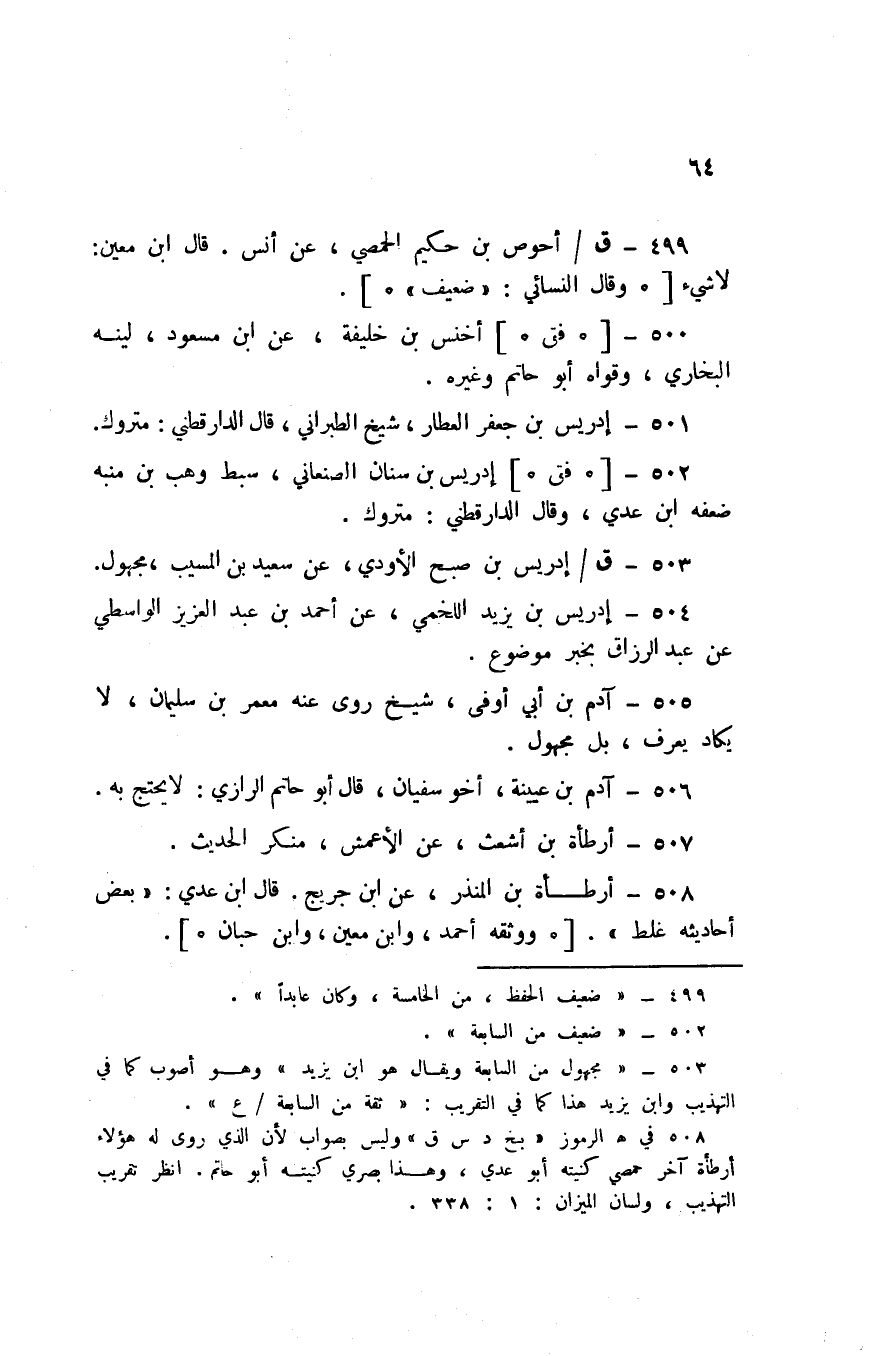 507 - ارطأة بن اشعث عَن الاعمش مُنكر الحَدِيث 508 ارطأة بن الْمُنْذر عَن ابْن جريج