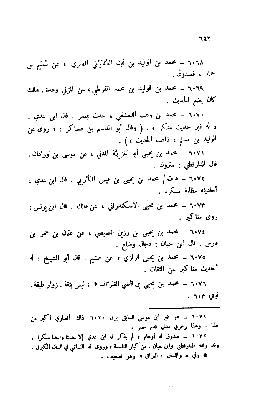 6076 - مُحَمَّد بن يحيى بن قَاضِي الغراف لَيْسَ بِثِقَة زور طبقَة توفّي 613