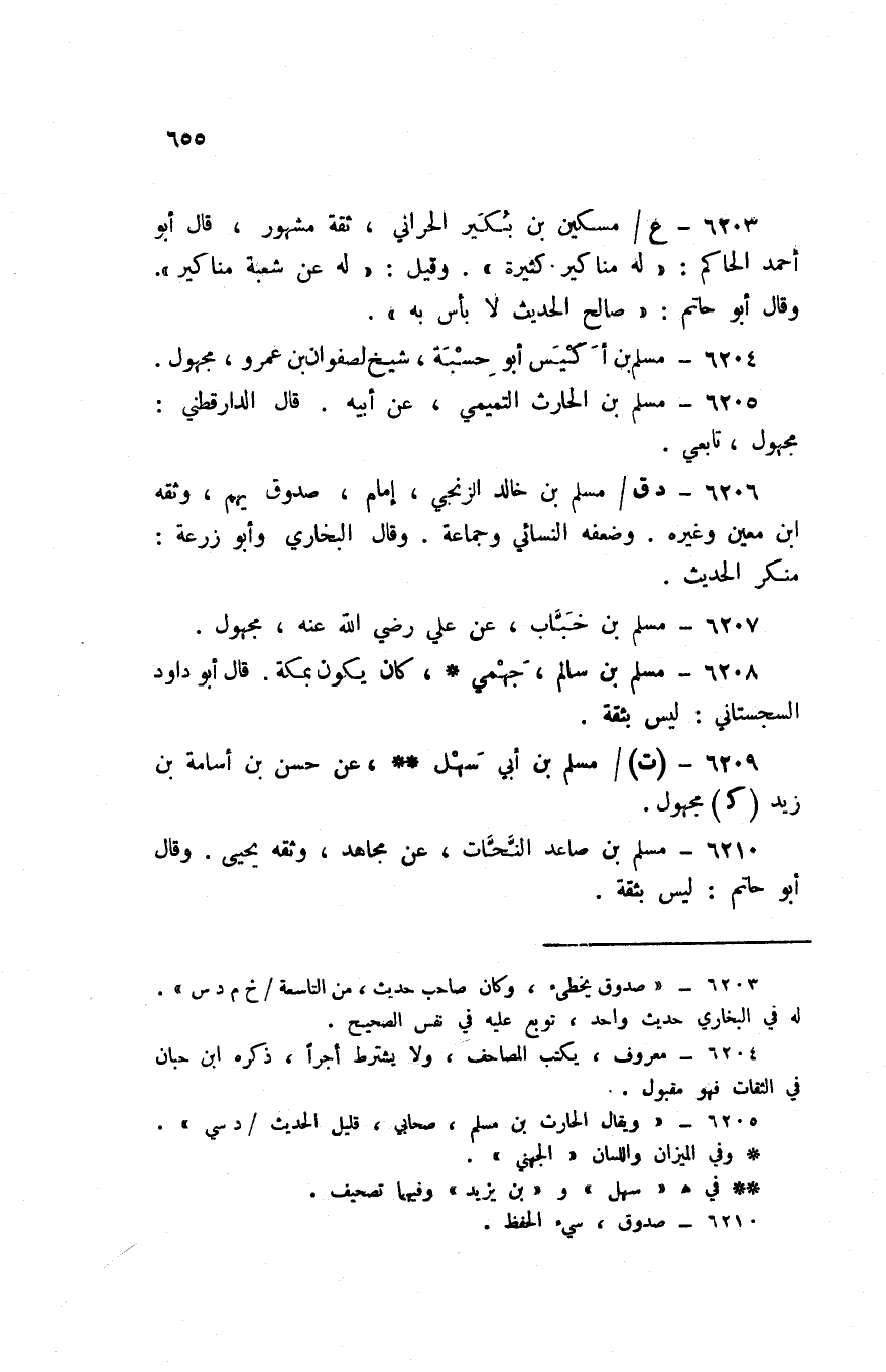 6206 - د ق / مُسلم بن خَالِد الزنْجِي إِمَام صَدُوق يهم وَثَّقَهُ ابْن معِين وَغَيره وَضَعفه النَّسَائِيّ وَجَمَاعَة وَقَالَ البُخَارِيّ وَأَبُو زرْعَة مُنكر الحَدِيث