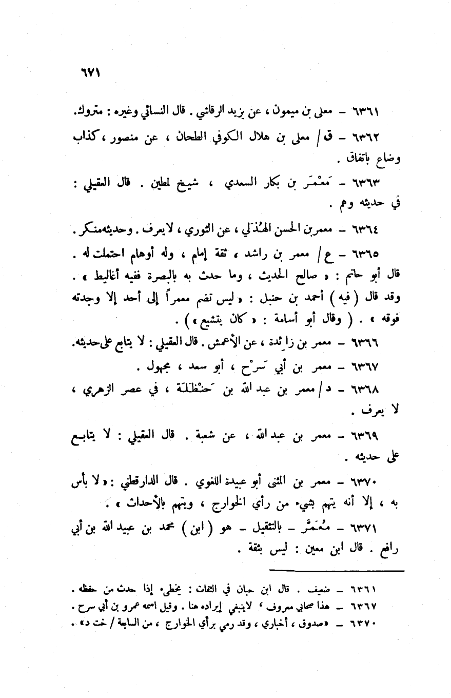 6371 - معمر بالتثقيل هُوَ ابْن مُحَمَّد بن عبيد الله بن أبي رَافع قَالَ ابْن معِين لَيْسَ بِثِقَة