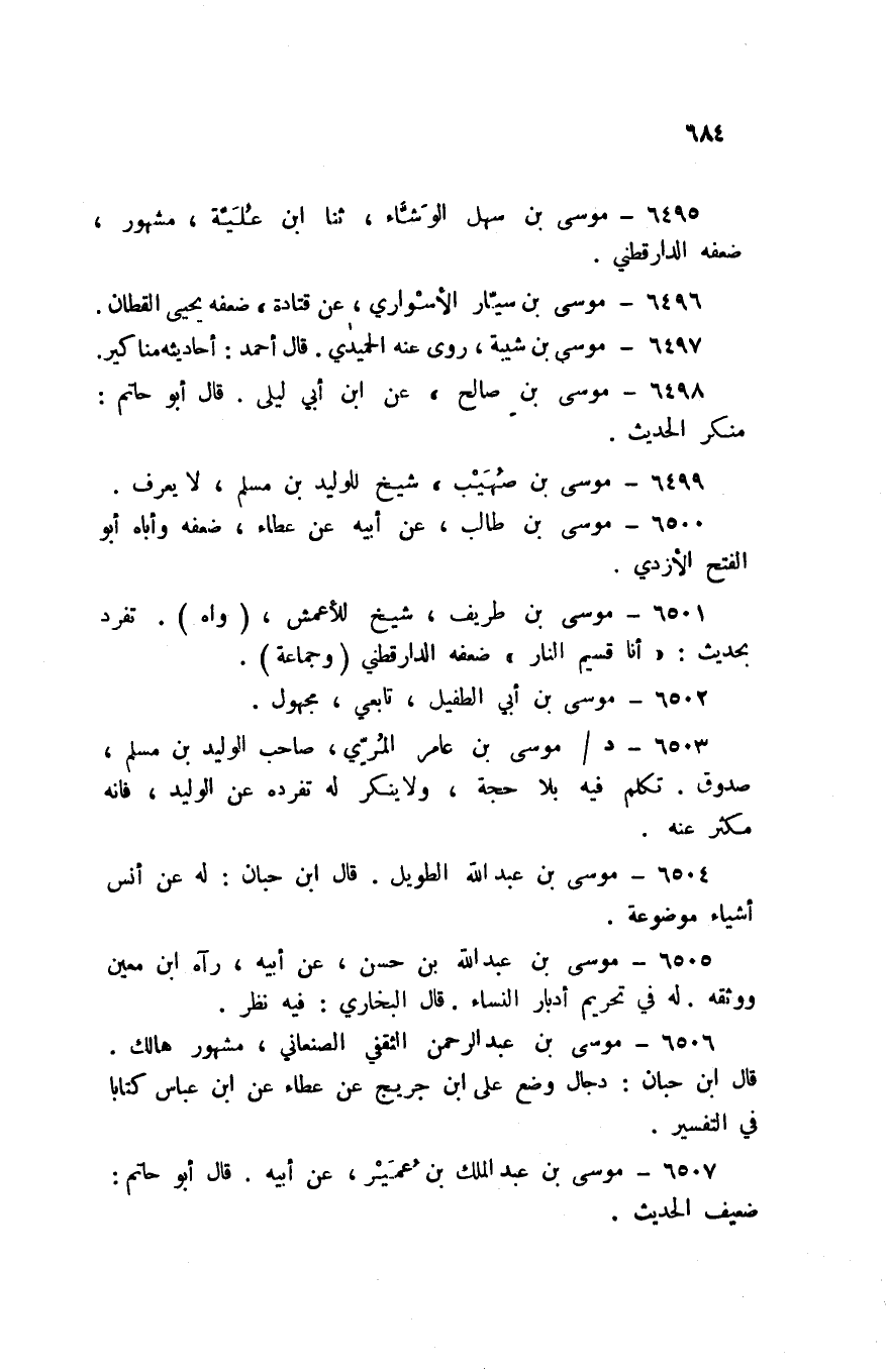 6495 - مُوسَى بن سهل الوشاء ثَنَا ابْن علية مَشْهُور ضعفه الدَّارَقُطْنِيّ