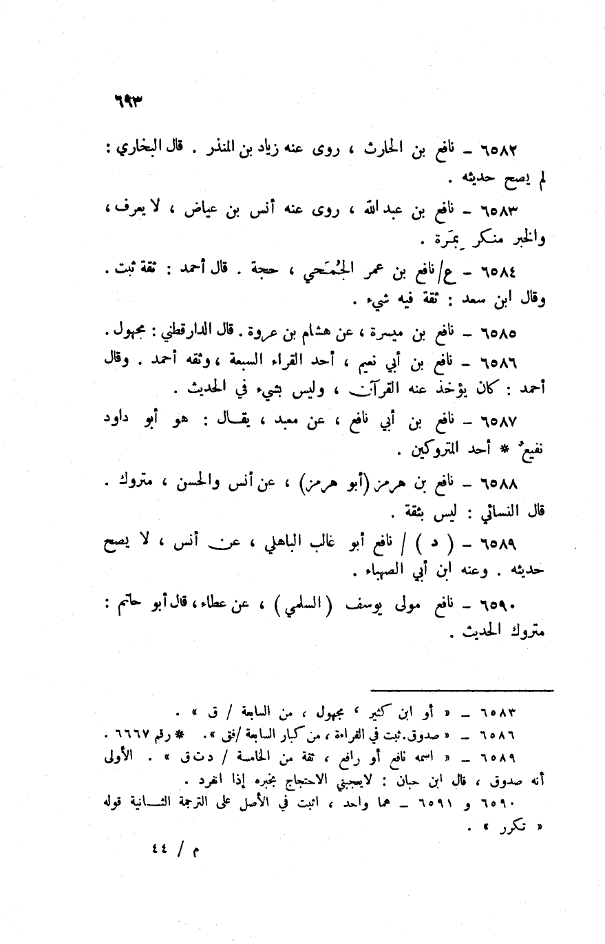 6590 - نَافِع مولى يُوسُف السّلمِيّ عَن عَطاء قَالَ أَبُو حَاتِم مَتْرُوك الحَدِيث