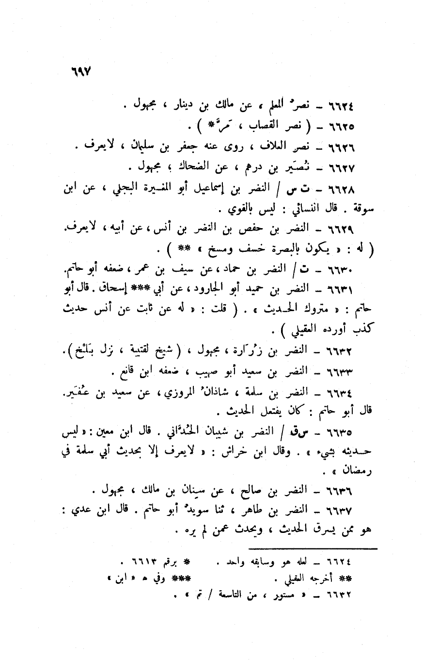 6630 - ت / النَّضر بن حَمَّاد عَن سيف بن عمر ضعفه أَبُو حَاتِم