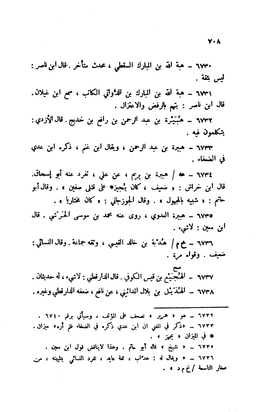 6733 - هُبَيْرَة بن عبد الرَّحْمَن وَيُقَال ابْن غنم ذكره ابْن عدي فِي الضُّعَفَاء