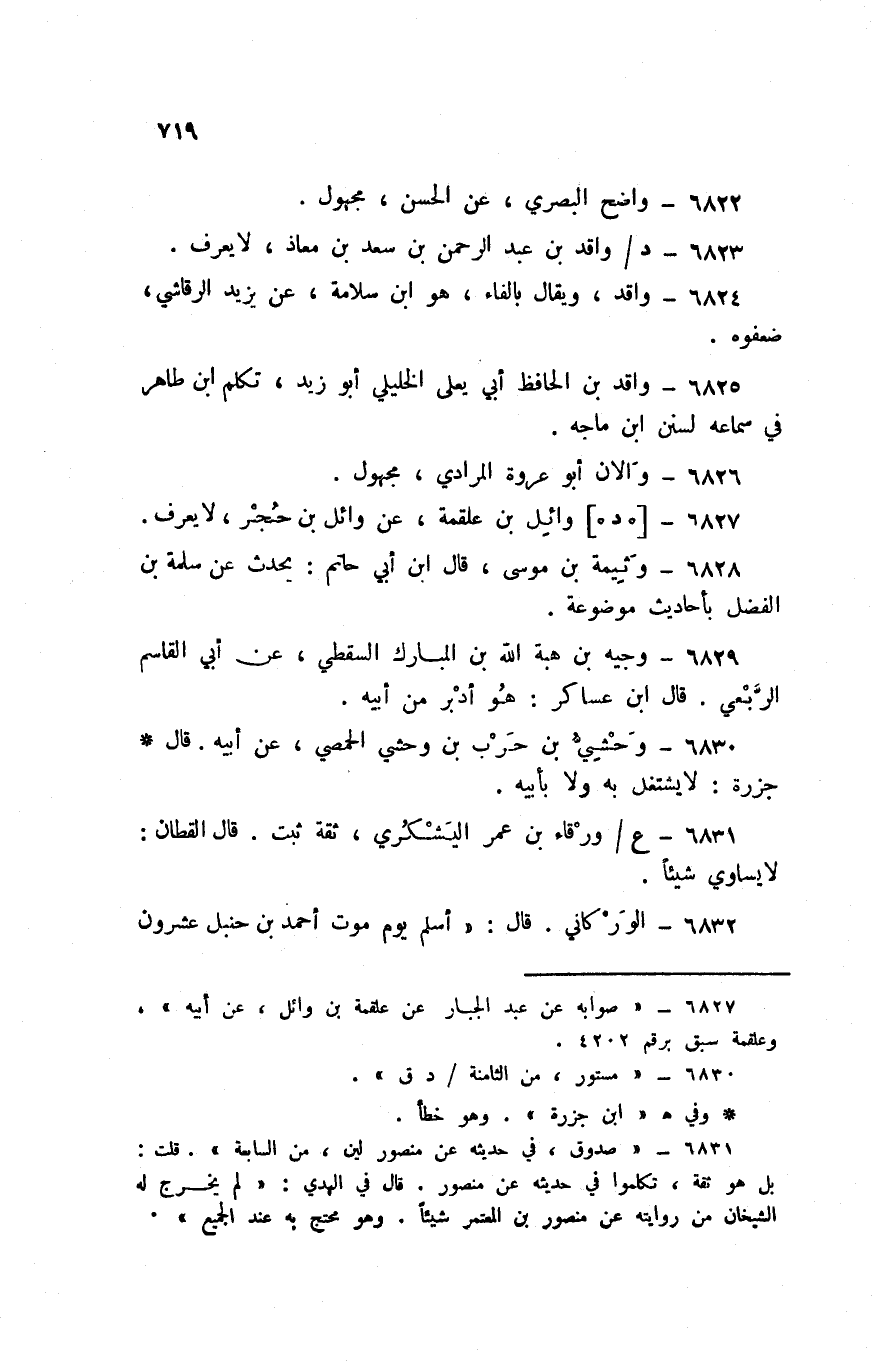 6827 - د وَائِل بن عَلْقَمَة عَن وَائِل بن حجر لَا يعرف