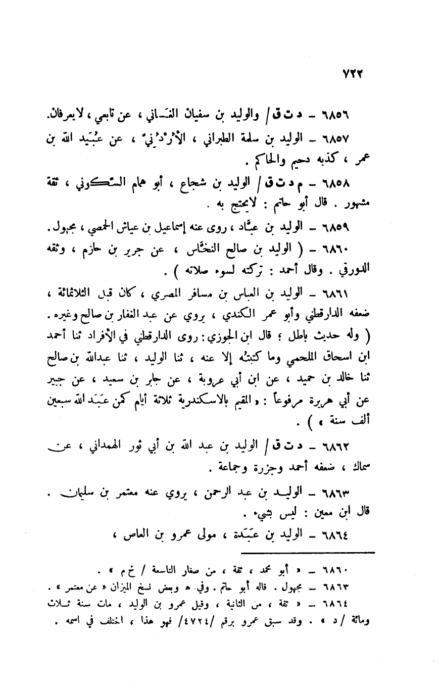 6858 - م د ت ق / الْوَلِيد بن شُجَاع أَبُو همام السكونِي ثِقَة مَشْهُور قَالَ أَبُو حَاتِم لَا يحْتَج بِهِ