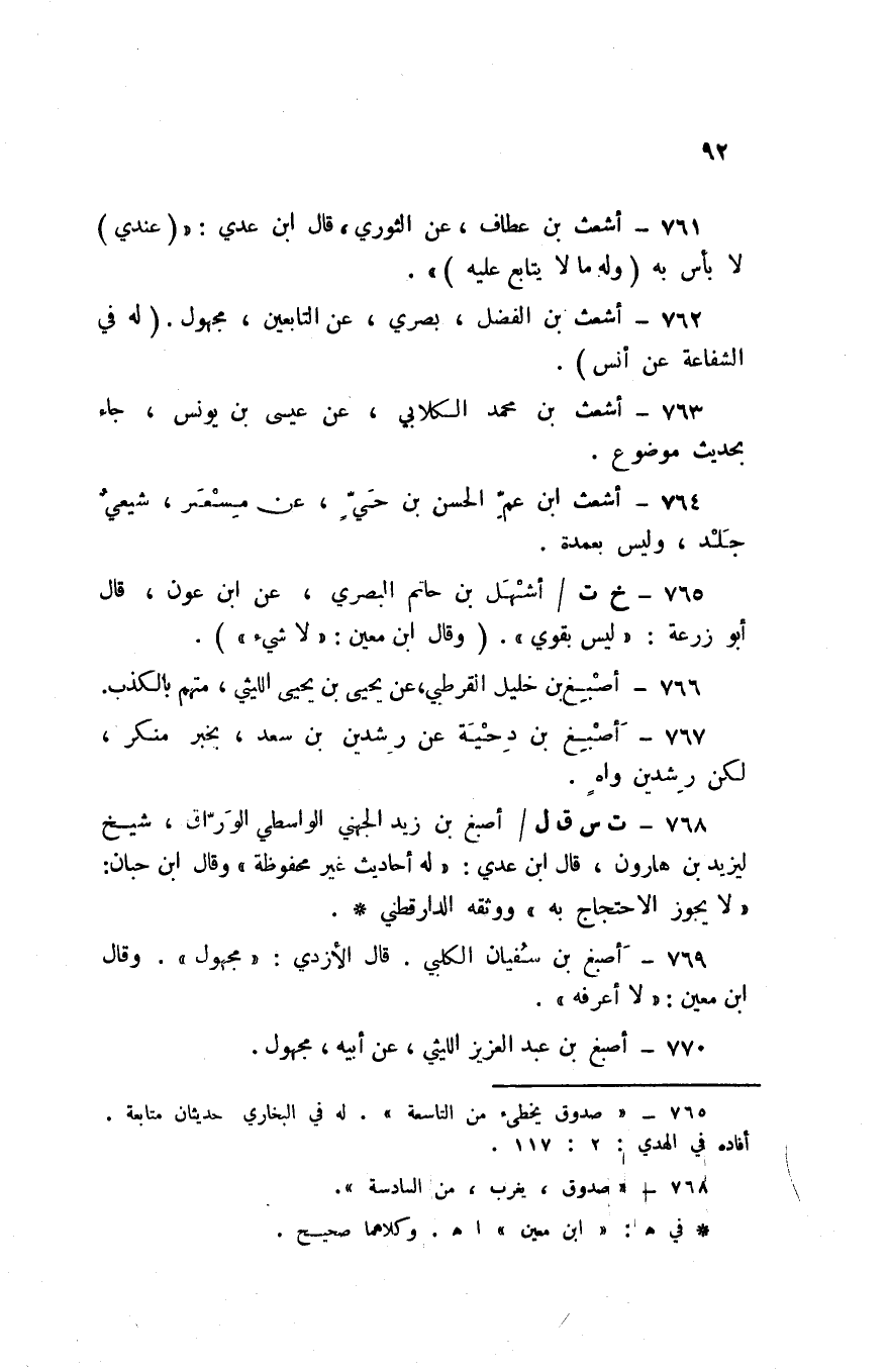 769 - اصبغ بن سُفْيَان الْكَلْبِيّ قَالَ الازدي مَجْهُول وَقَالَ ابْن معِين لَا اعرفه