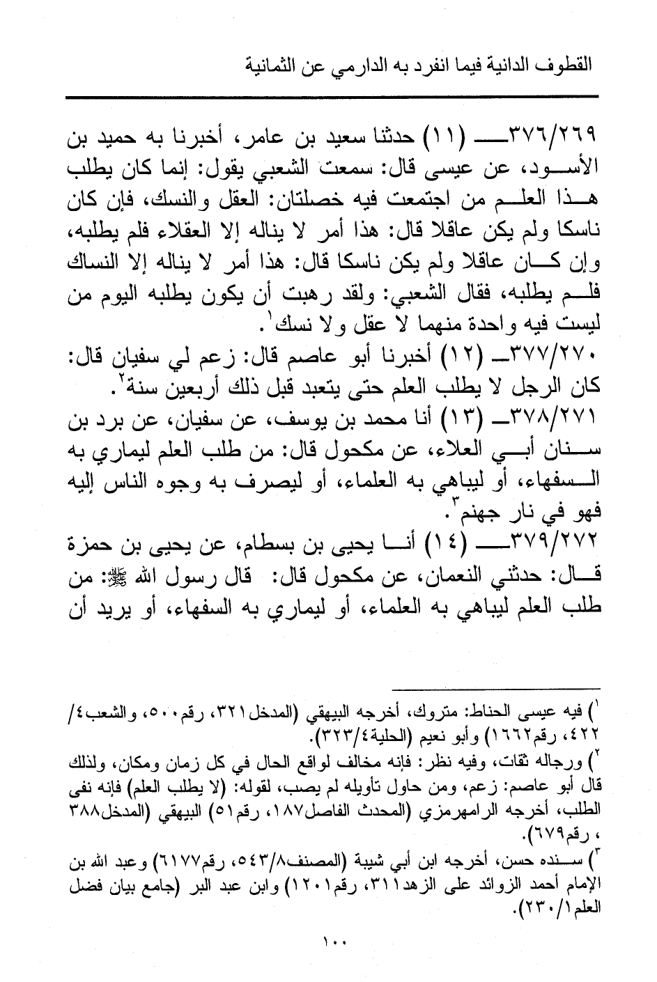 (¬3) سنده حسن، أخرجه ابن أبي شيبة (المصنف 8/ 543، رقم 6177) وعبد الله بن الإمام أحمد الزوائد على الزهد 311، رقم 1201) وابن عبد البر (جامع بيان فضل العلم 1/ 230).