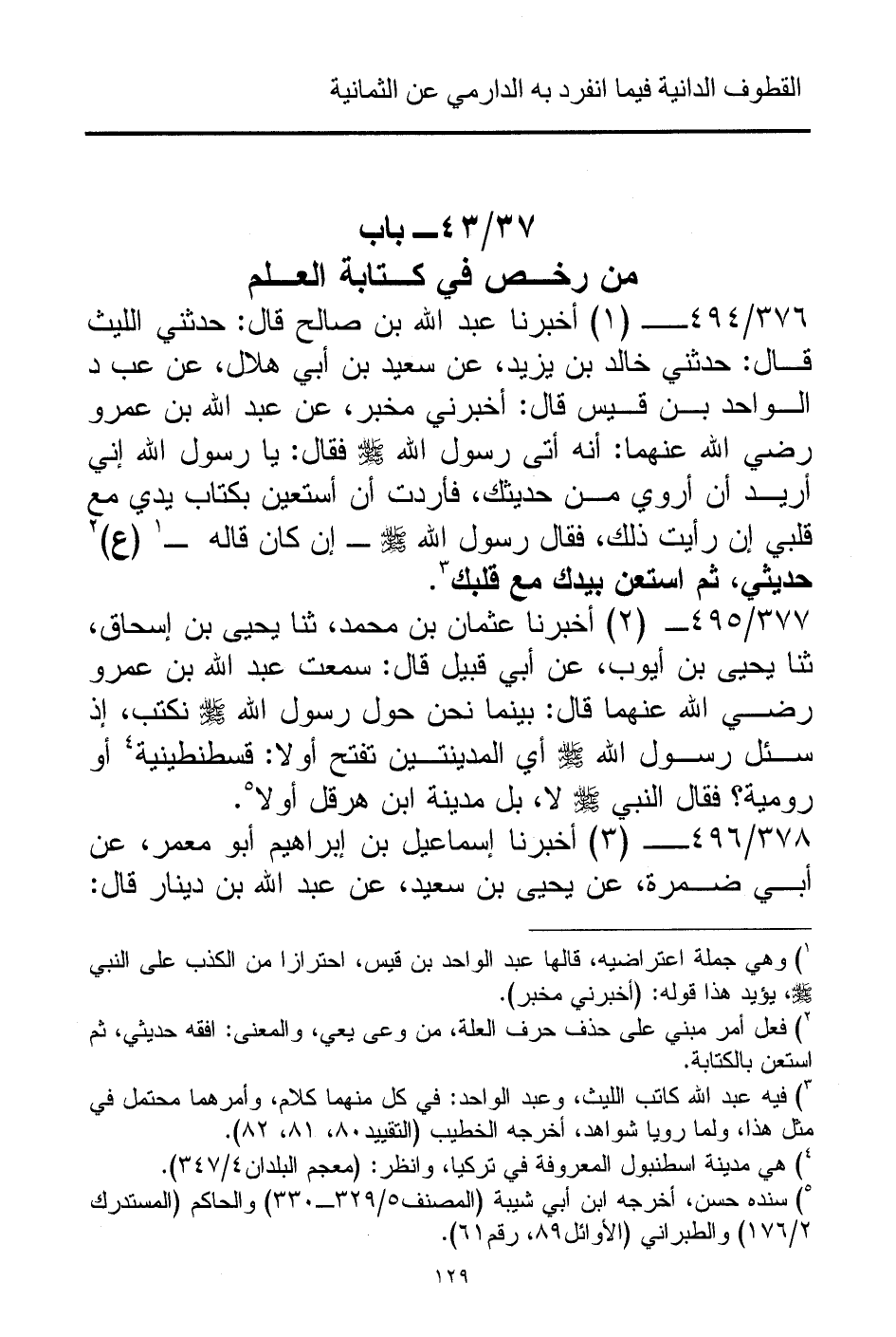37/ 43 - باب من رخص في كتابة العلم