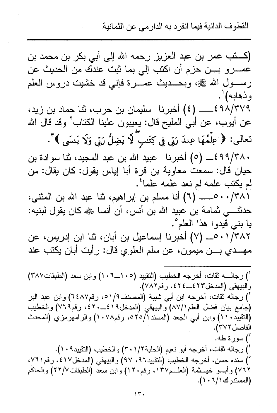 (¬5) سنده حسن، أخرجه الخطيب (التقييد 96، 97) والبيهقي (المدخل 417، رقم 761، 762) وأبو خيثمة (العلم 137، رقم 120) وابن سعد (الطبقات 7/ 22) والحاكم (المستدرك 1/ 106).