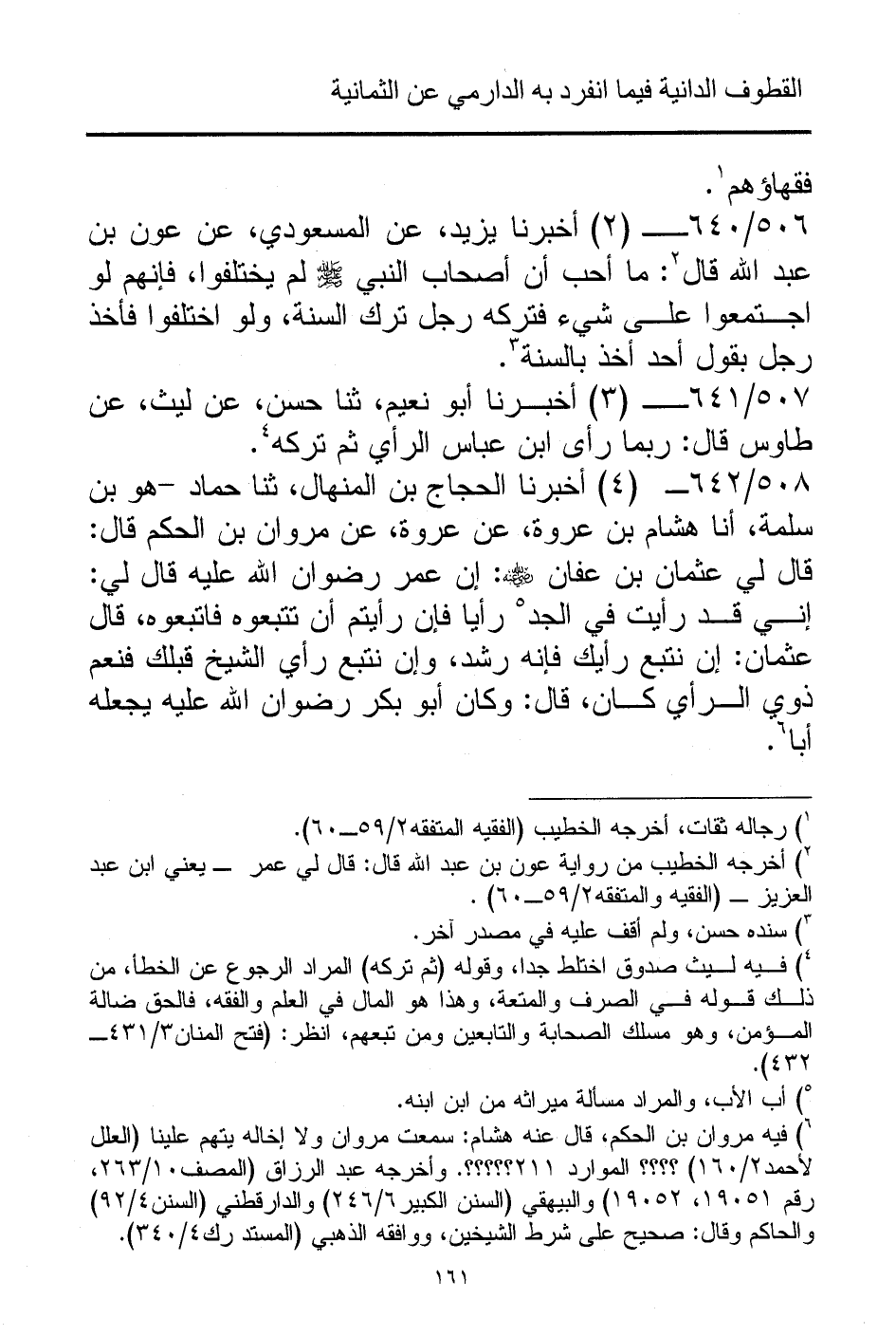 (¬6) فيه مروان بن الحكم، قال عنه هشام: سمعت مروان ولا إخاله يتهم علينا (العلل لأحمد 2/ 160) الموارد 211. وأخرجه عبد الرزاق (المصف 10/ 263، رقم 19051، 19052) والبيهقي (السنن الكبير 6/ 246) والدارقطني (السنن 4/ 92) والحاكم وقال: صحيح على شرط الشيخين، ووافقه الذهبي (المستد رك 4/ 340).