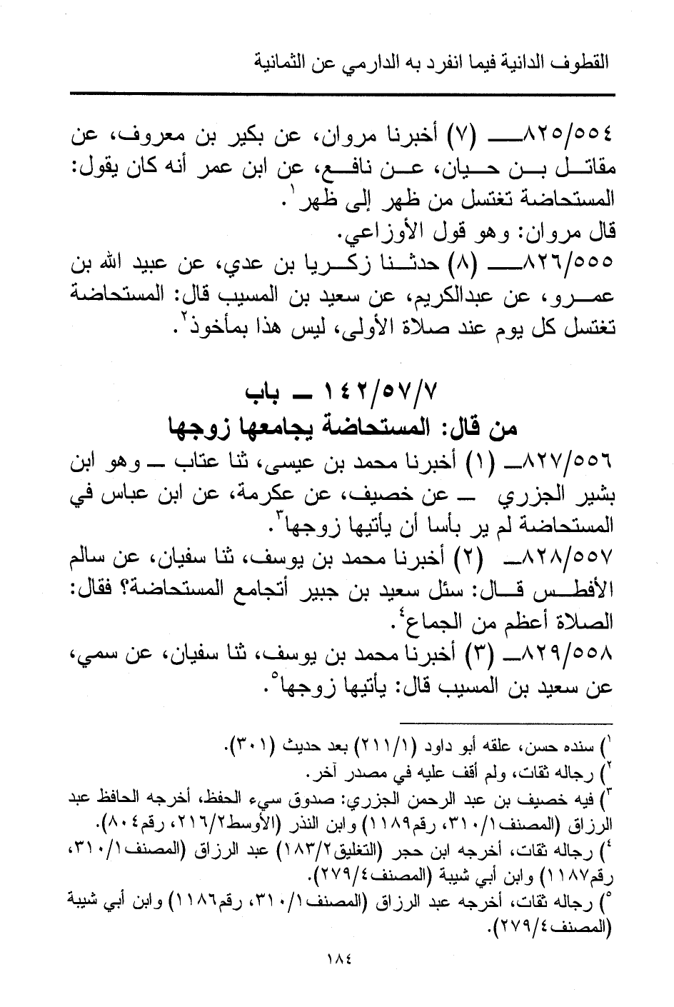 556/ 827 - (1) أخبرنا محمد بن عيسى، ثنا عتاب - وهو ابن بشير الجزري - عن خصيف، عن عكرمة، عن ابن عباس في المستحاضة لم ير بأسا أن يأتيها زوجها (¬3).