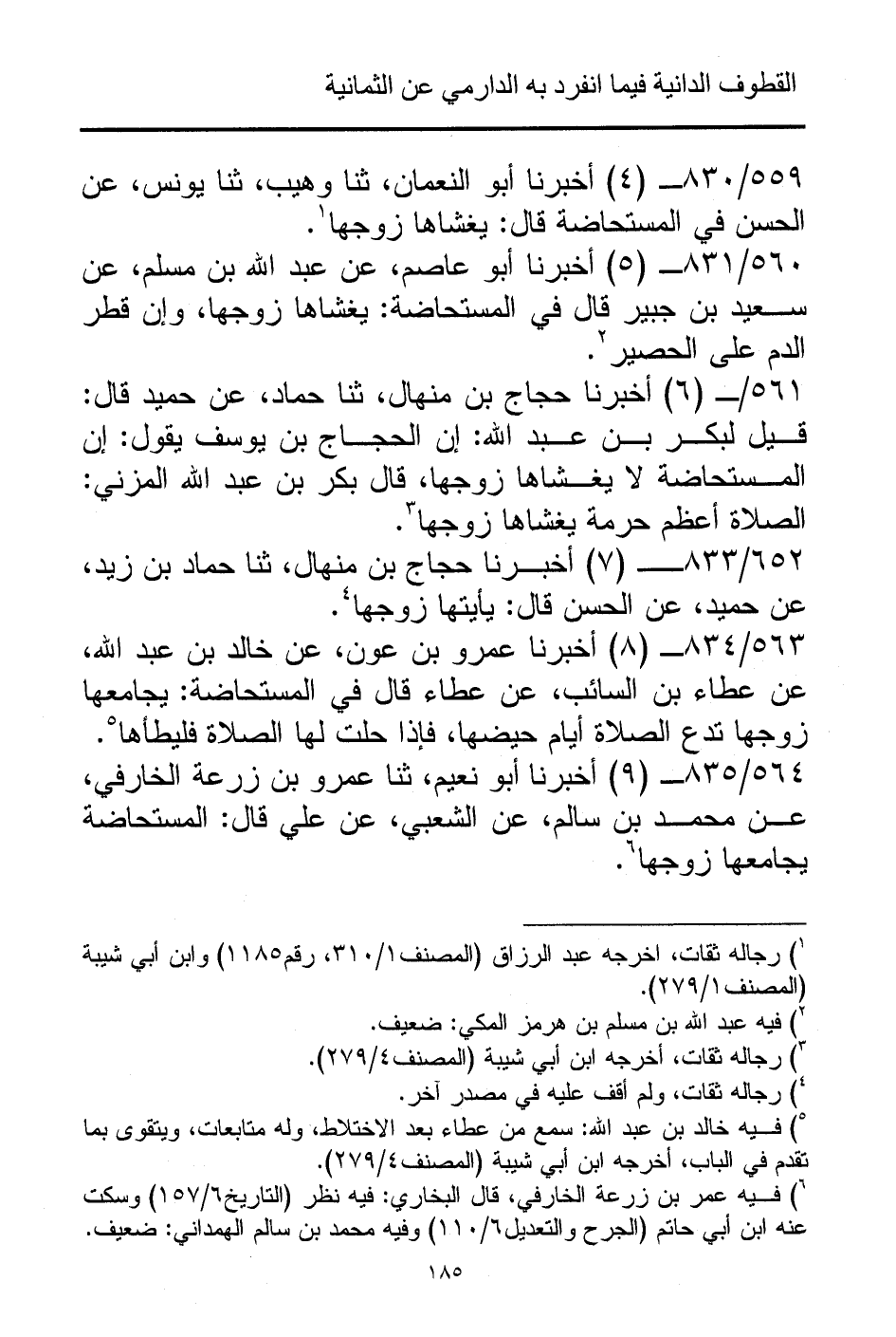 559/ 830 - (4) أخبرنا أبو النعمان، ثنا وهيب، ثنا يونس، عن الحسن في المستحاضة قال: يغشاها زوجها (¬1).