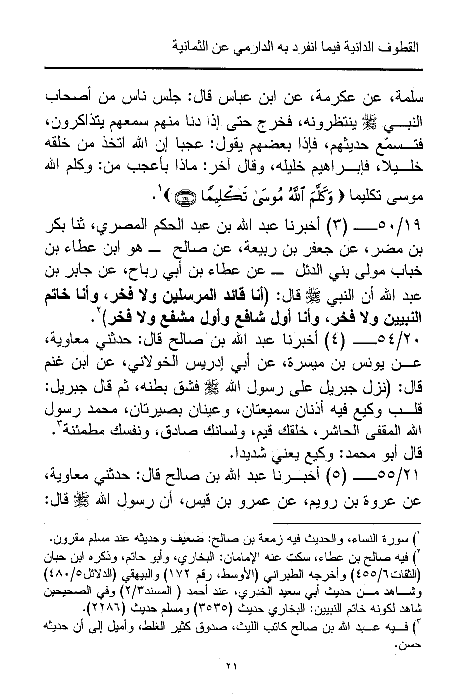 21/ 55 - (5) أخبرنا عبد الله بن صالح قال: حدثني معاوية، عن عروة بن رويم، عن عمرو بن قيس، أن رسول الله - صلى الله عليه وسلم - قال: