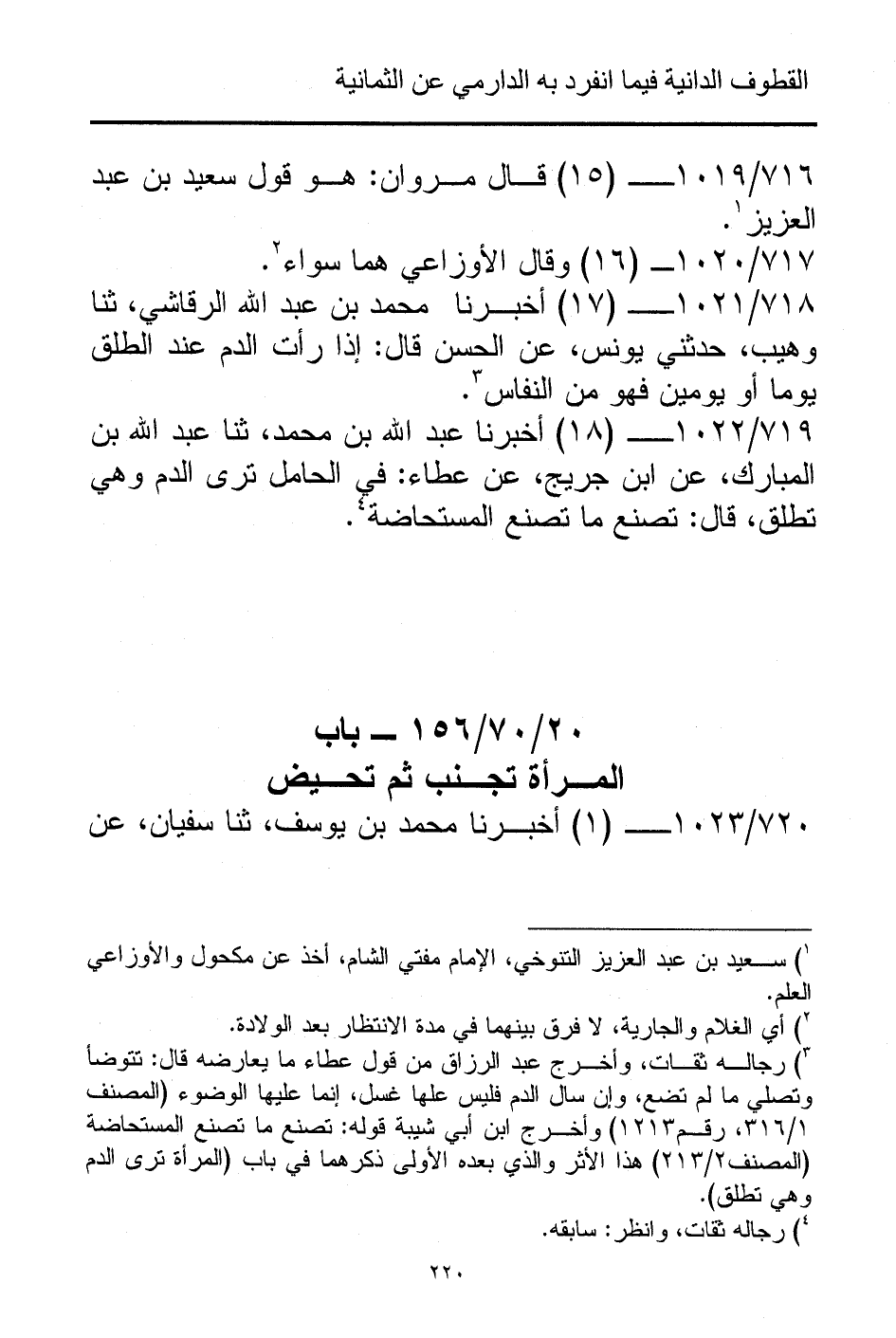 719/ 1022 - (18) أخبرنا عبد الله بن محمد، ثنا عبد الله بن المبارك، عن ابن جريج، عن عطاء: في الحامل ترى الدم وهي تطلق، قال: تصنع ما تصنع المستحاضة (¬4).