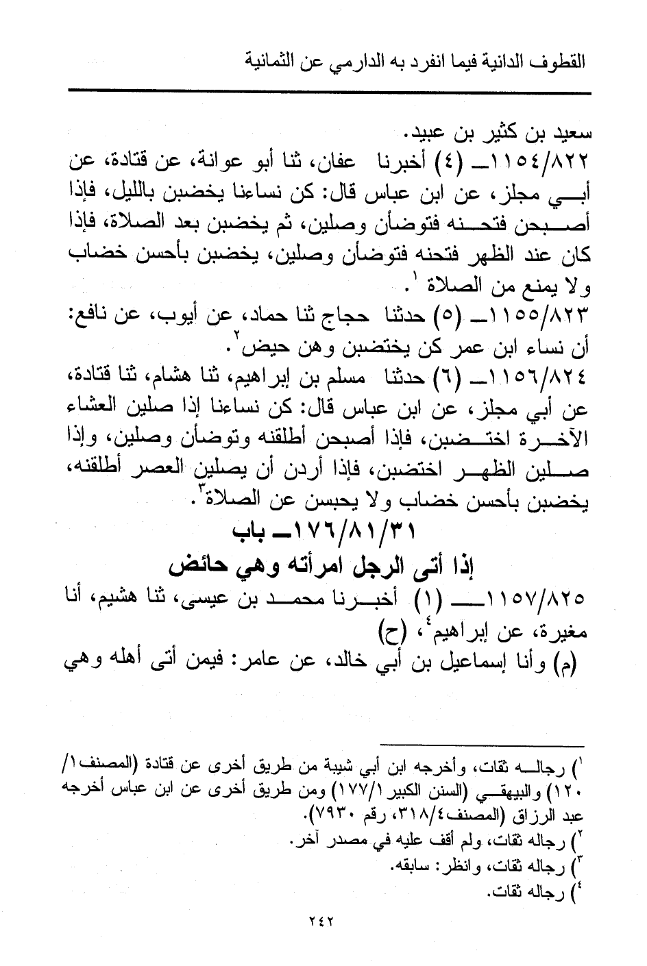 825/ 1157 - (1) أخبرنا محمد بن عيسى، ثنا هشيم، أنا مغيرة، عن إبراهيم (¬4)، (ح)