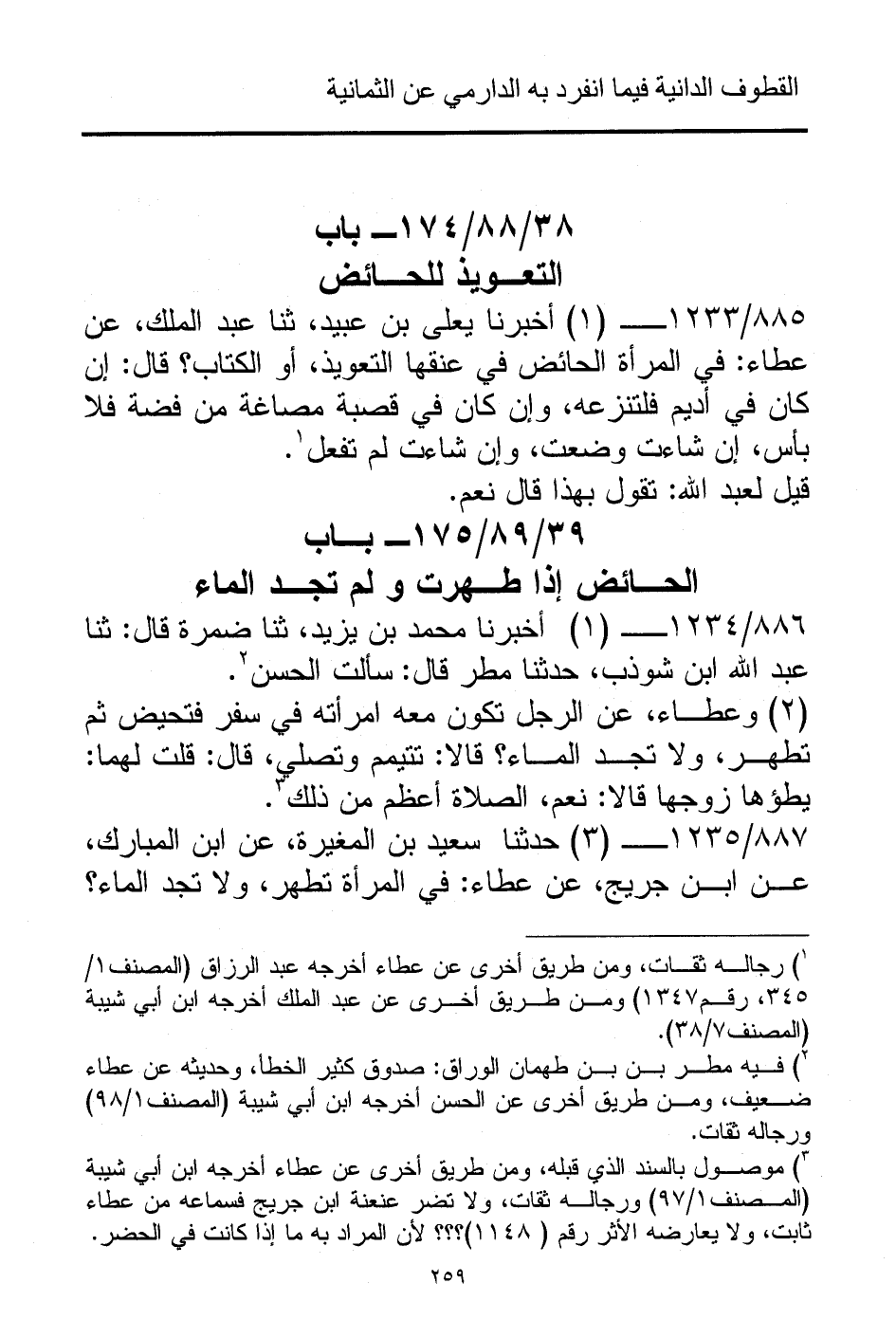 (¬3) موصول بالسند الذي قبله، ومن طريق أخرى عن عطاء أخرجه ابن أبي شيبة (المصنف 1/ 97) ورجاله ثقات، ولا تضر عنعنة ابن جريج فسماعه من عطاء ثابت، ولا يعارضه الأثر رقم (1148)؟ ؟ ؟ لأن المراد به ما إذا كانت في الحضر.