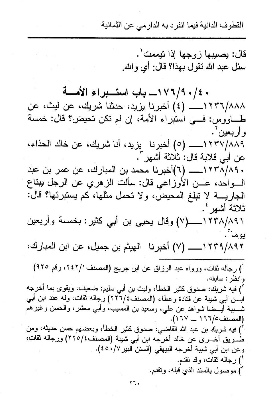 888/ 1236 - (4) أخبرنا يزيد، حدثنا شريك، عن ليث، عن طاووس: في استبراء الأمة، إن لم تكن تحيض؟ قال: خمسة وأربعين (¬2).