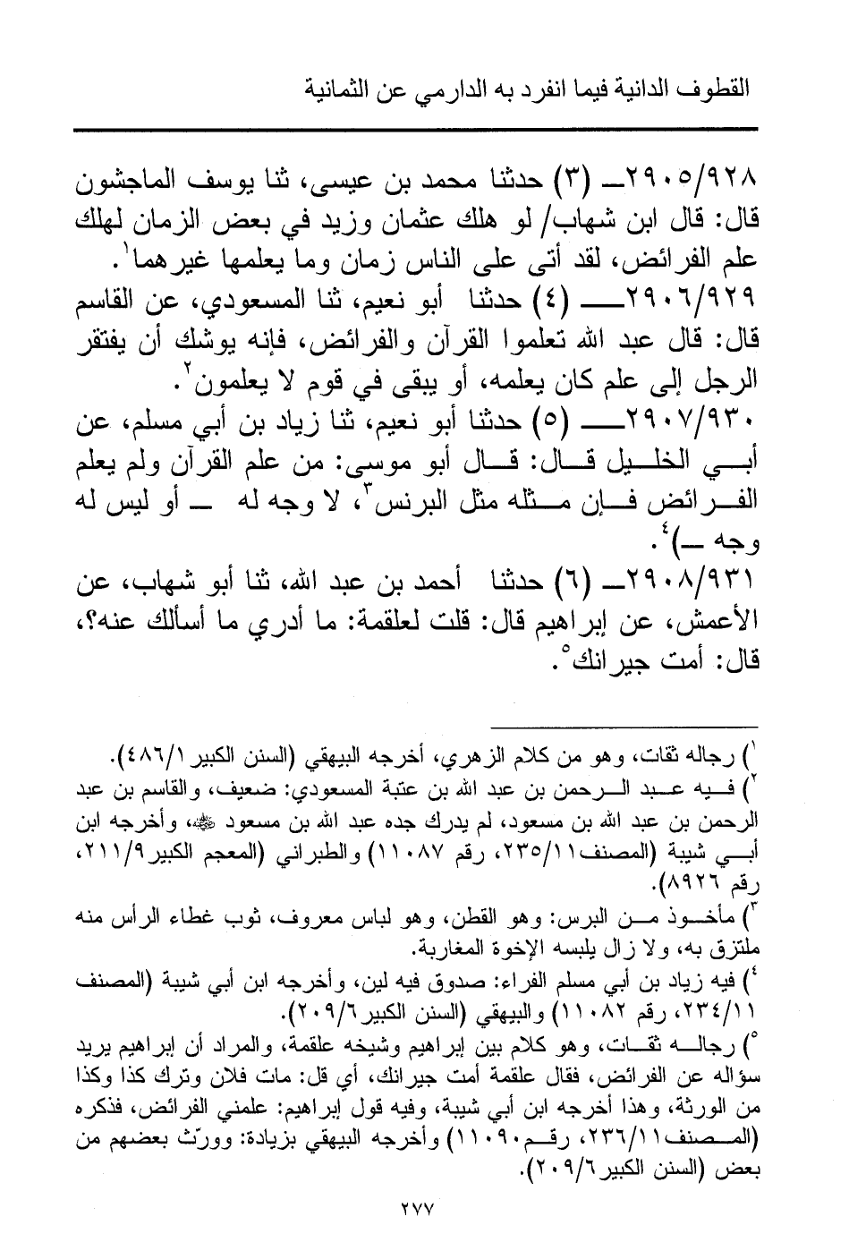 930/ 2907 - (5) حدثنا أبو نعيم، ثنا زياد بن أبي مسلم، عن أبي الخليل قال: قال أبو موسى: "من علم القرآن ولم يعلم الفرائض فإن مثله مثل البرنس (¬3)، لا وجه له - أو ليس له وجه - " (¬4).