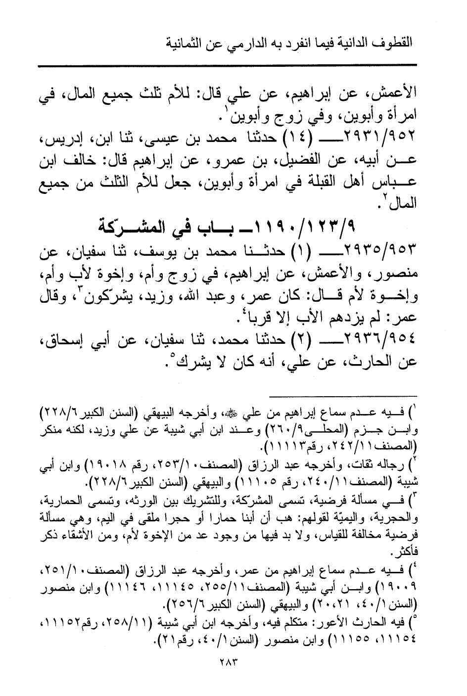 954/ 2936 - (2) حدثنا محمد، ثنا سفيان، عن أبي إسحاق، عن الحارث، عن علي، أنه كان لا يشرك (¬5).