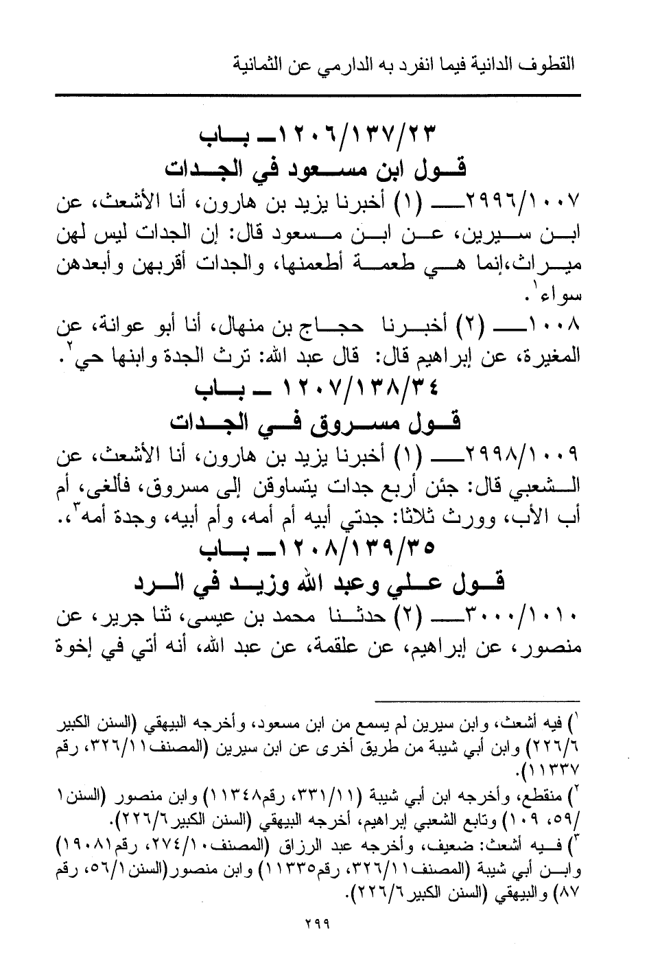 1010/ 3000 - (2) حدثنا محمد بن عيسى، ثنا جرير، عن منصور، عن إبراهيم، عن علقمة، عن عبد الله، أنه أتي في إخوة