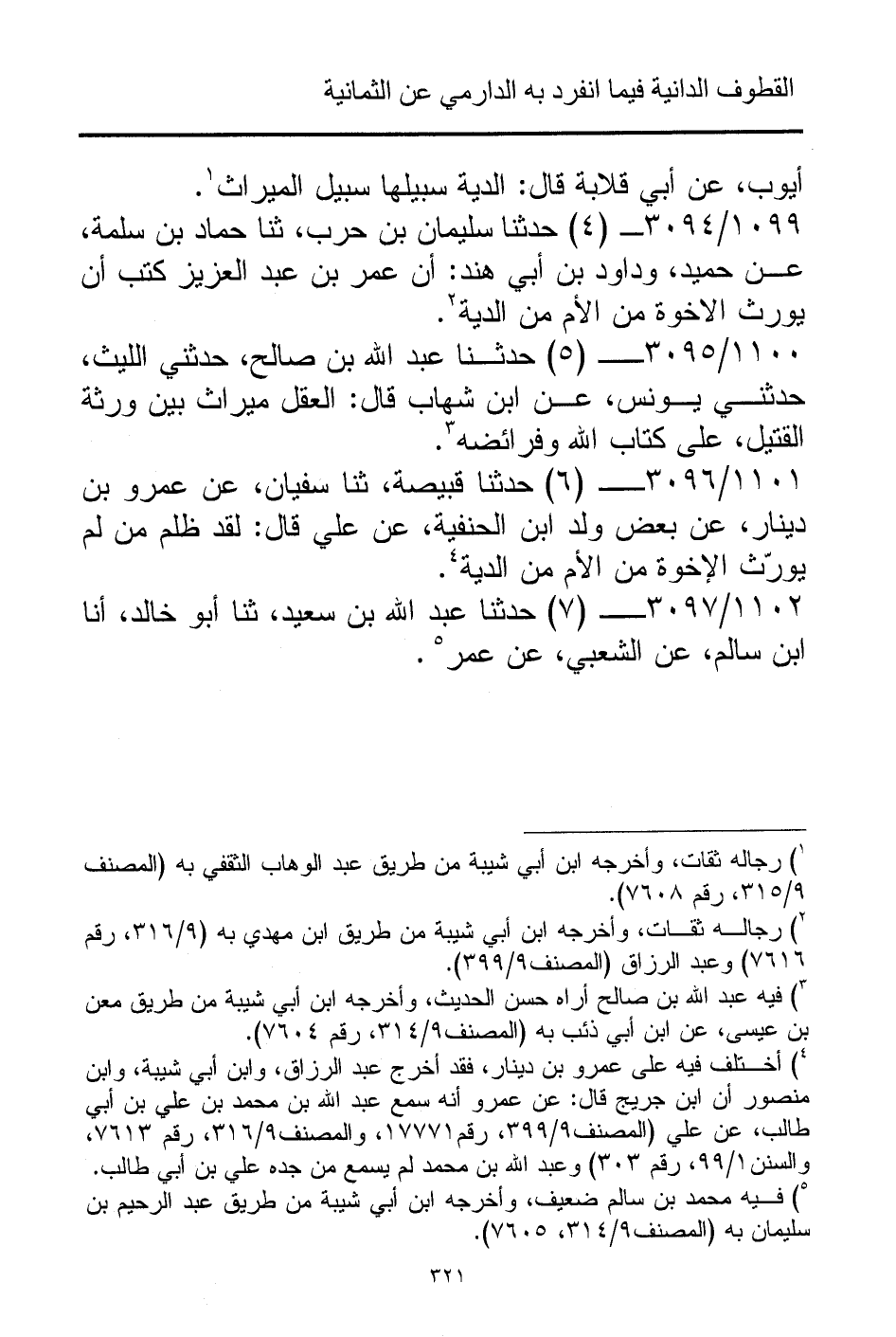 1099/ 3094 - (4) حدثنا سليمان بن حرب، ثنا حماد بن سلمة، عن حميد، وداود بن أبي هند: أن عمر بن عبد العزيز كتب أن يورث الاخوة من الأم من الدية (¬2).