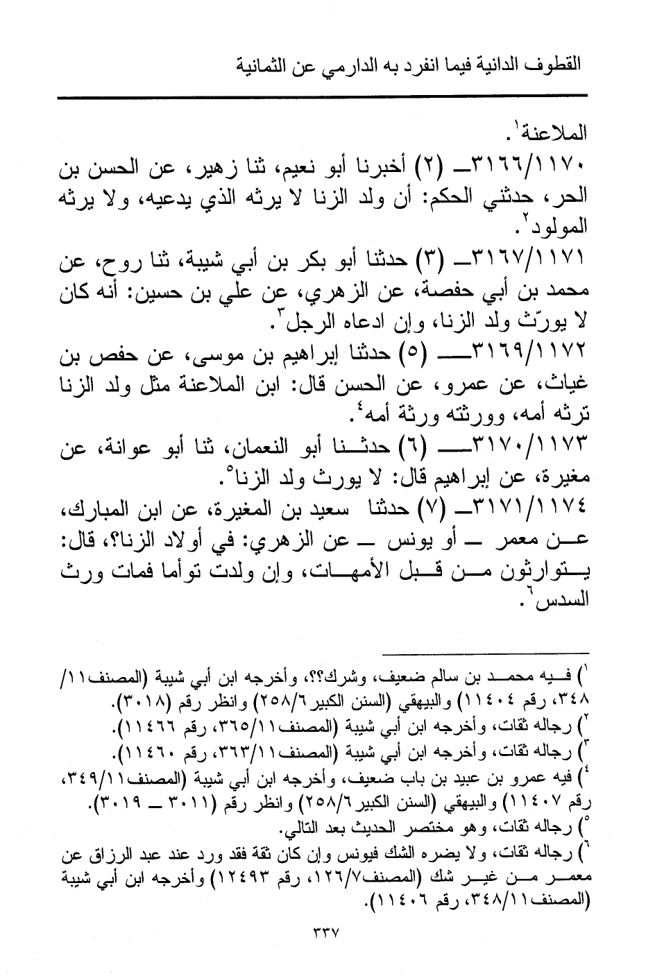 1174/ 3171 - (7) حدثنا سعيد بن المغيرة، عن ابن المبارك، عن معمر - أو يونس - عن الزهري: في أولاد الزنا؟ ، قال: يتوارثون من قبل الأمهات، وإن ولدت توأما فمات ورث السدس (¬6).