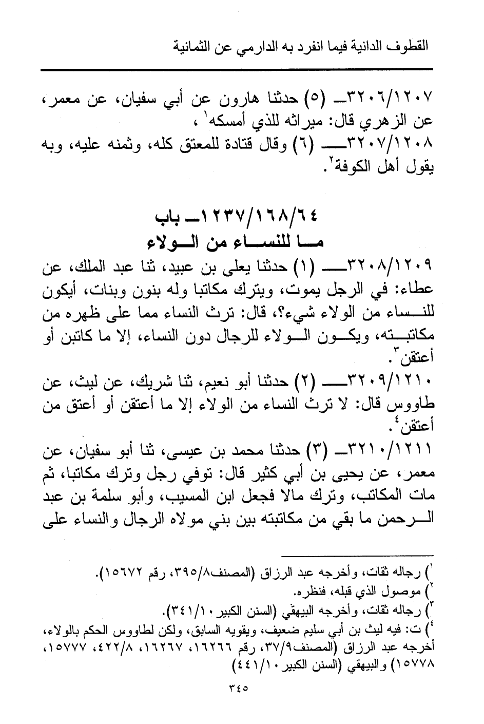 1211/ 3210 - (3) حدثنا محمد بن عيسى، ثنا أبو سفيان، عن معمر، عن يحيى بن أبي كثير قال: توفي رجل وترك مكاتبا، ثم مات المكاتب، وترك مالا فجعل ابن المسيب، وأبو سلمة بن عبد الرحمن ما بقي من مكاتبته بين بني مولاه الرجال والنساء على