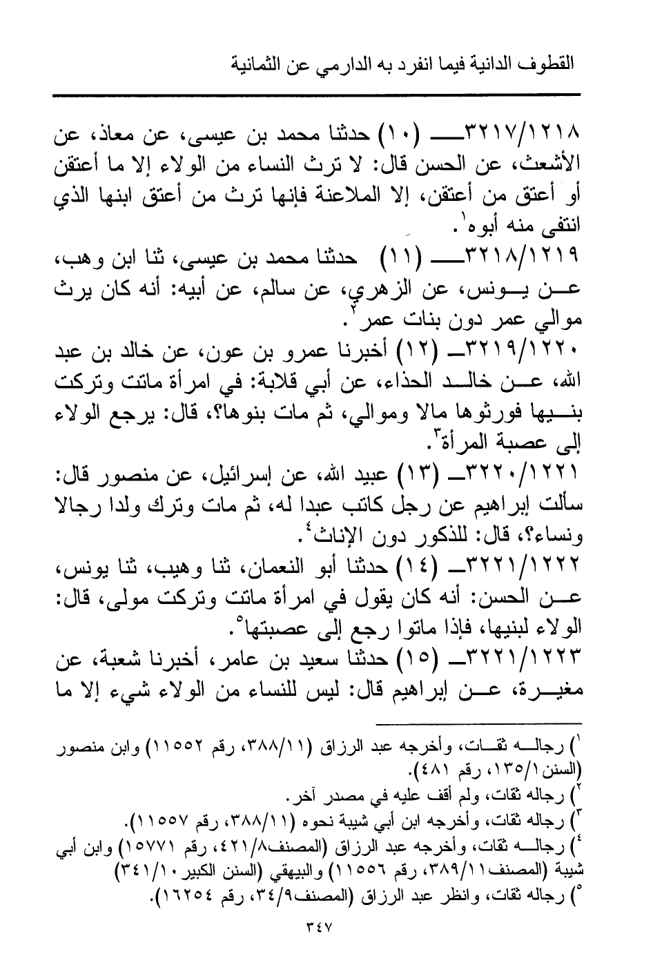 1219/ 3218 - (11) حدثنا محمد بن عيسى، ثنا ابن وهب، عن يونس، عن الزهري، عن سالم، عن أبيه: أنه كان يرث موالي عمر دون بنات عمر (¬2).