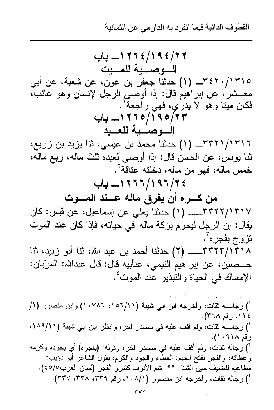 24/ 196/ 1266 - باب من كره أن يفرق ماله عند الموت