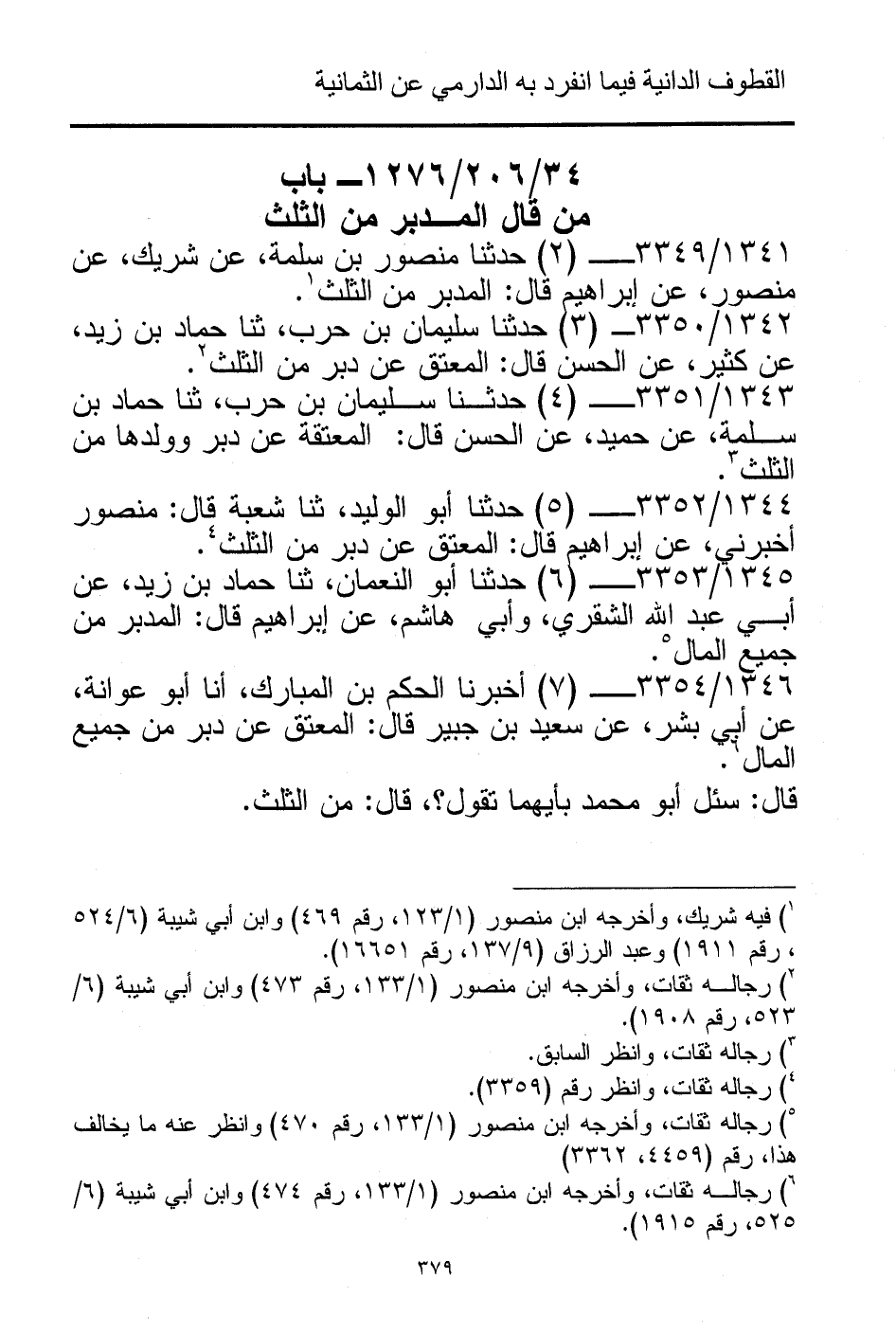 34/ 206/ 1276 - باب من قال المدبر من الثلث