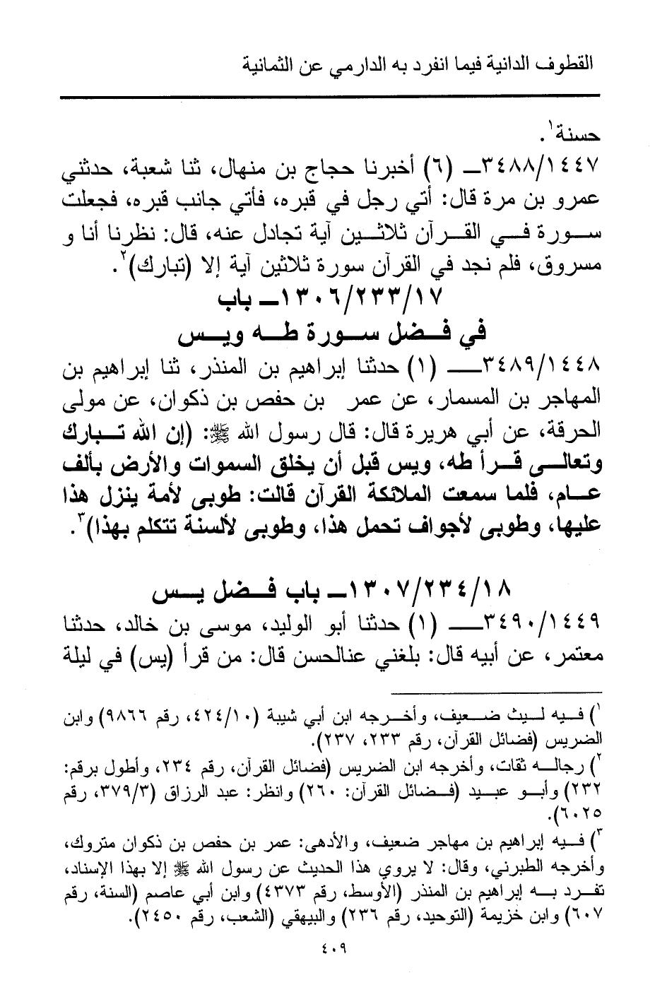 17/ 233/ 1306 - باب في فضل سورة طه ويس