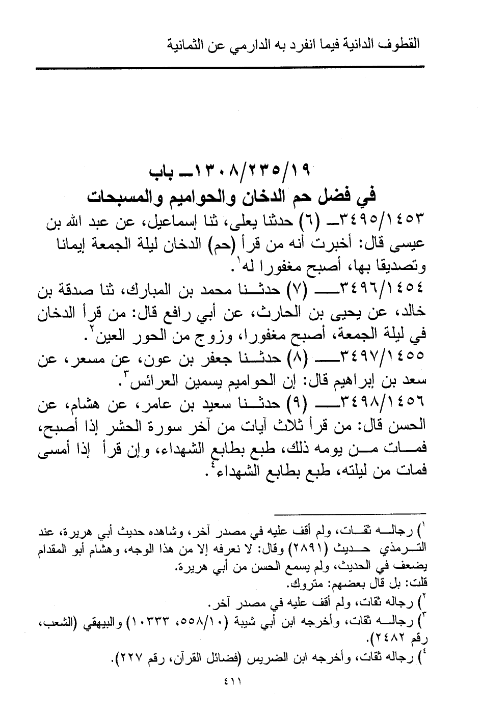 19/ 235/ 1308 - باب في فضل حم الدخان والحواميم والمسبحات