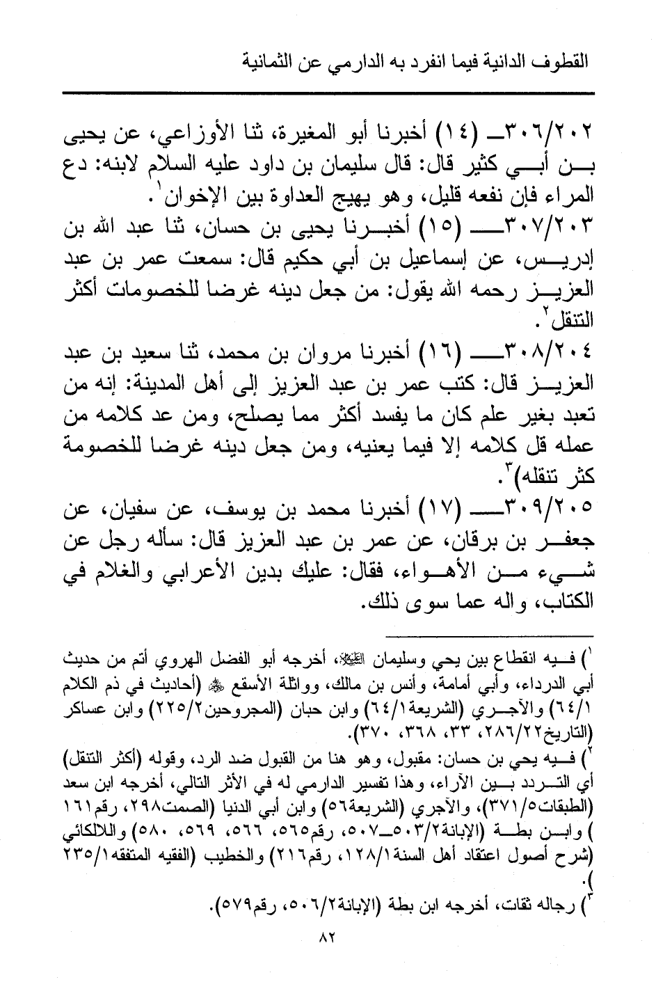 (¬2) فيه يحي بن حسان: مقبول، وهو هنا من القبول ضد الرد، وقوله (أكثر التنقل) أي التردد بين الآراء، وهذا تفسير الدارمي له في الأثر التالي، أخرجه ابن سعد (الطبقات 5/ 371)، والآجري (الشريعة 56) وابن أبي الدنيا (الصمت 298، رقم 161) وابن بطة (الإبانة 2/ 503 - 507، رقم 565، 566، 569، 580) واللالكائي (شرح أصول اعتقاد أهل السنة 1/ 128، رقم 216) والخطيب (الفقيه المتفقه 1/ 235).